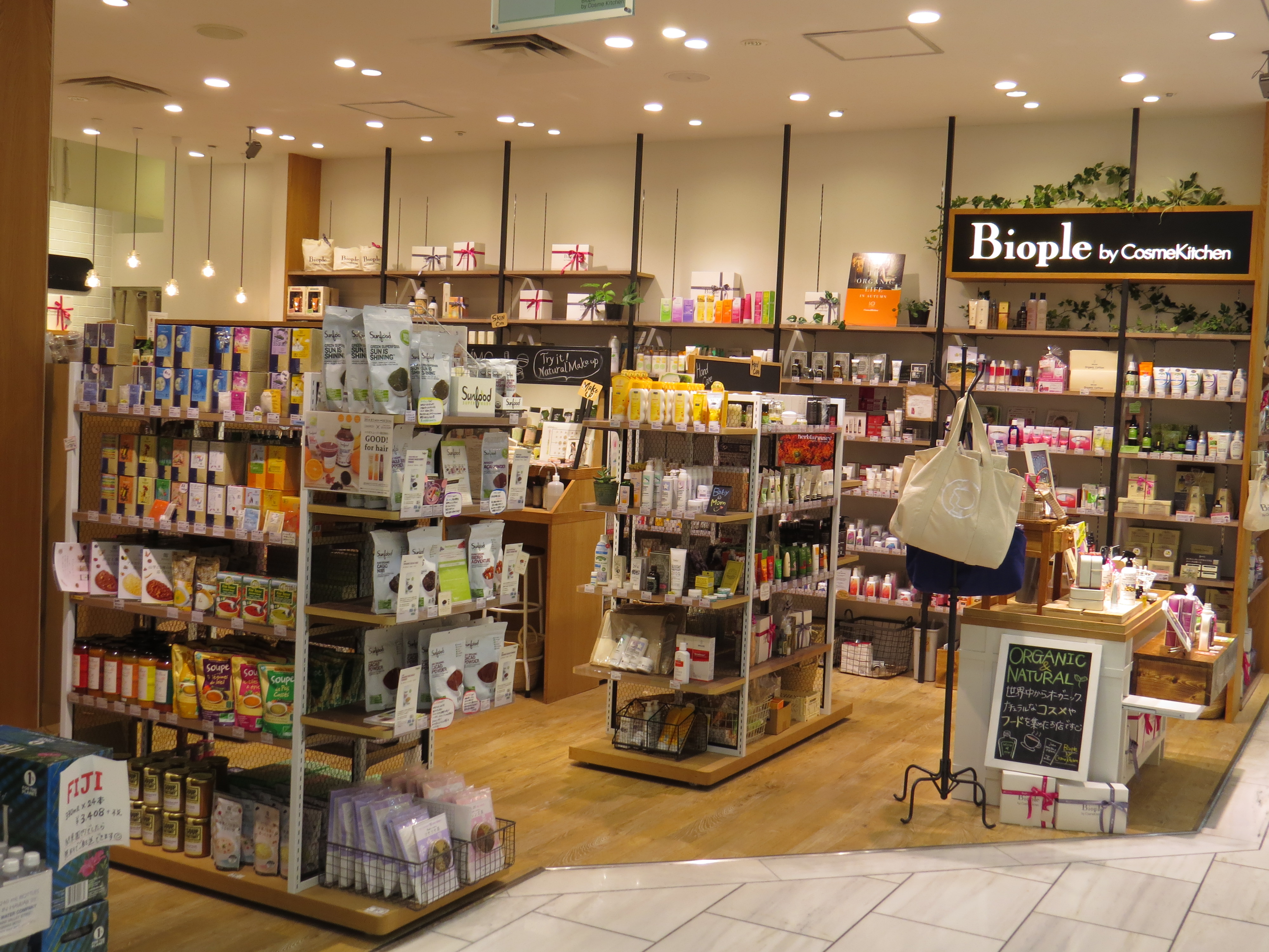 In addition to cosmetics, Biople stores also carry a good selection of organic teas, confectionery, beverages, home fragrance and groceries. There are currently seven Bioples across Japan; like Cosmekitchen, the stores are based in department stores and shopping centres. I visited the Biople in Ogikubo’s Lumine department store. It’s small but very attractive.