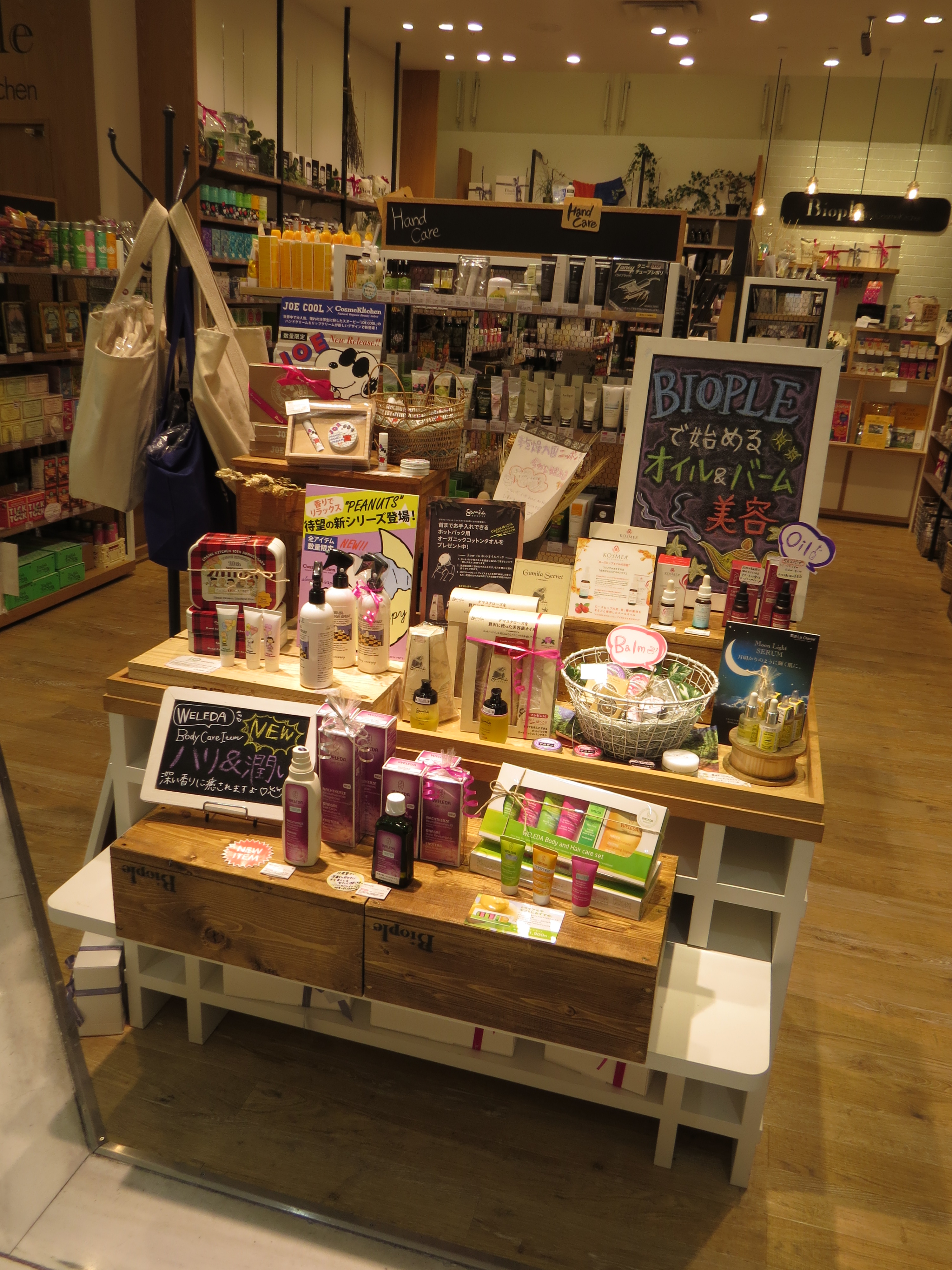 However, the Cosmekitchen chain seems to be doing very well judging by the many stores they have opened in just ten years. And Cosmekitchen is not Mash Beauty Lab’s only organic enterprise. In 2013, a second store chain followed: Biople by Cosmekitchen also sells organic beauty (many of the Cosmekitchen brands are available in Bioples) but its focus lies more on organic products in general and an organic lifestyle – and in fact, the store name is a combination of the romaji words “bio” and “people”.
