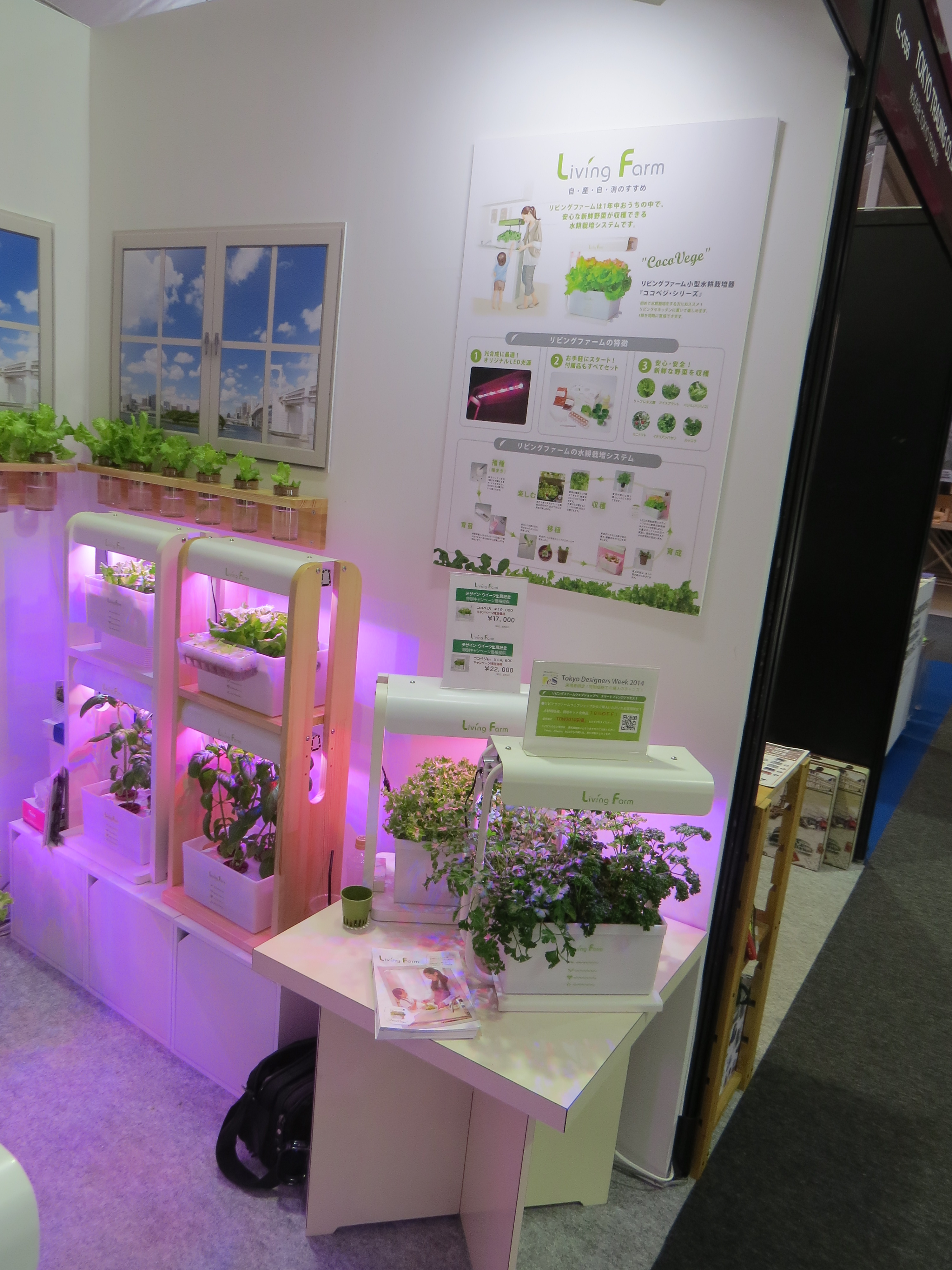 Another exhibitor was Living Farm, also from Japan. The company manufactures LED powered hydroponic devices. Hydroponics are a type of hydro-culture (you can look it up on Wikipedia) – basically it’s soil-less agriculture; plants are grown in a mineral-rich nutrient solution and not in soil or dirt. Living Farm has a whole range of indoor hydroponic devices in different sizes – you can grow your own herbs, lettuce, spinach or even flowers; allowing you to experience the joy of doing a bit of gardening, cultivating and growing plants without the need for a balcony or garden. Considering how densely populated Japan is, and how overcrowded the cities are (little greenery and living space is at a premium), it is easy to understand how this concept would be popular over here. Whilst I can imagine many Europeans turning up their noses at the principle of hydroponic cultivation for enjoyment (“it’s SO artificial”), it is an ingenious and very obvious solution for overcrowded urban spaces.