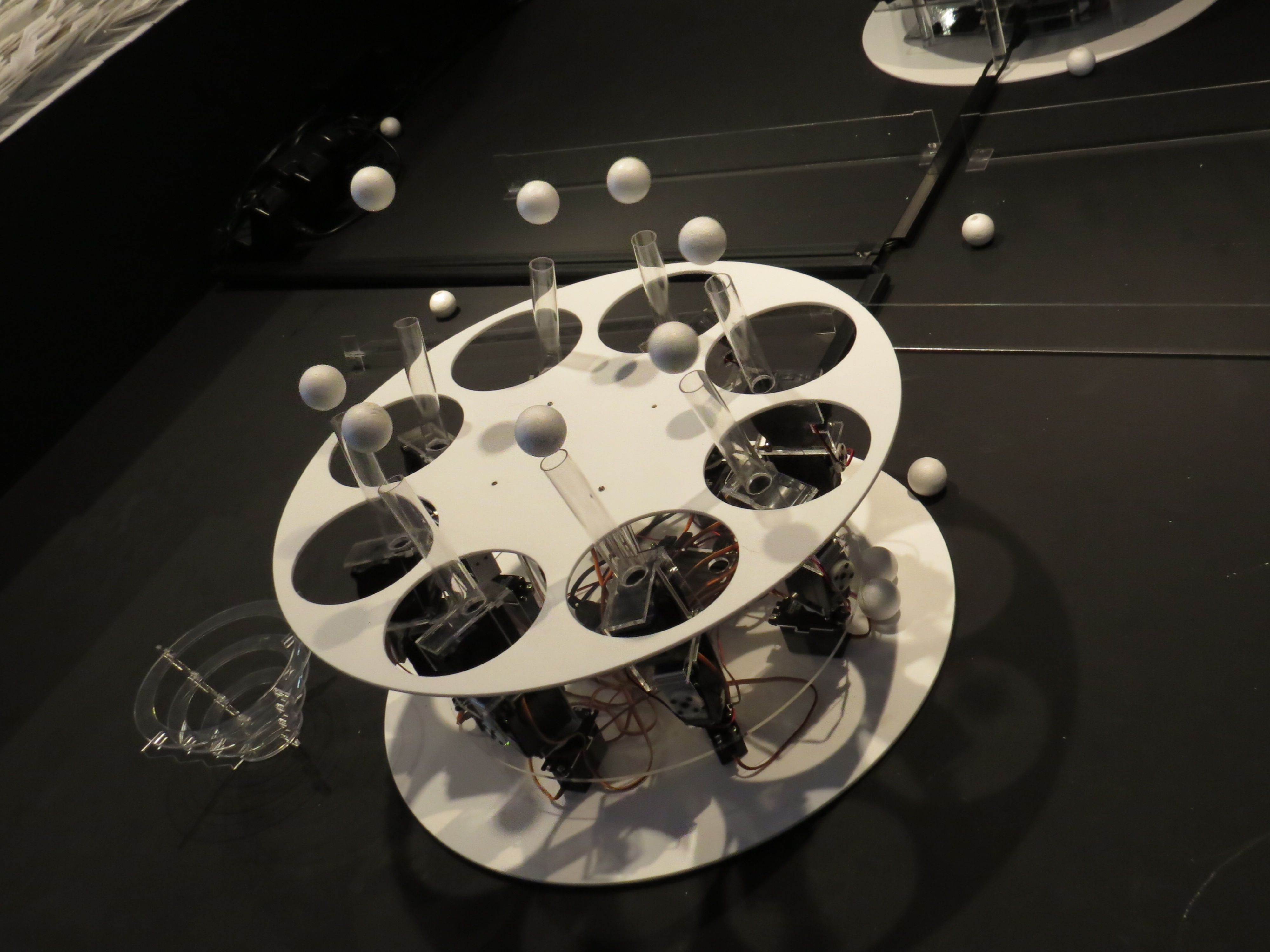 The second section in the Asia Awards category was the Young Creator Exhibition tent which features the works of young artists from around the world, selected from hundreds of applicants by a panel of judges. And there were several very cool exhibits in this section indeed! Yu Matsuda presented “haku-muku”, silver balls made from tin foil compressed under high pressure – mundane materials transformed by creativity into works of art. Ryusuke Kido’s installation “Eternal Future” features lego building blocks made from incense – they do look like the real thing, just colourful lego blocks piled up in geometric shapes until you see the grey, lego-shaped blocks of ashes right next to them…! And Ryo Kishi’s ping pong ball installation “atOms/MoLECULE” – several little plastic balls vibrate and dance on air streams – plays with our perception of stability and frailty.
