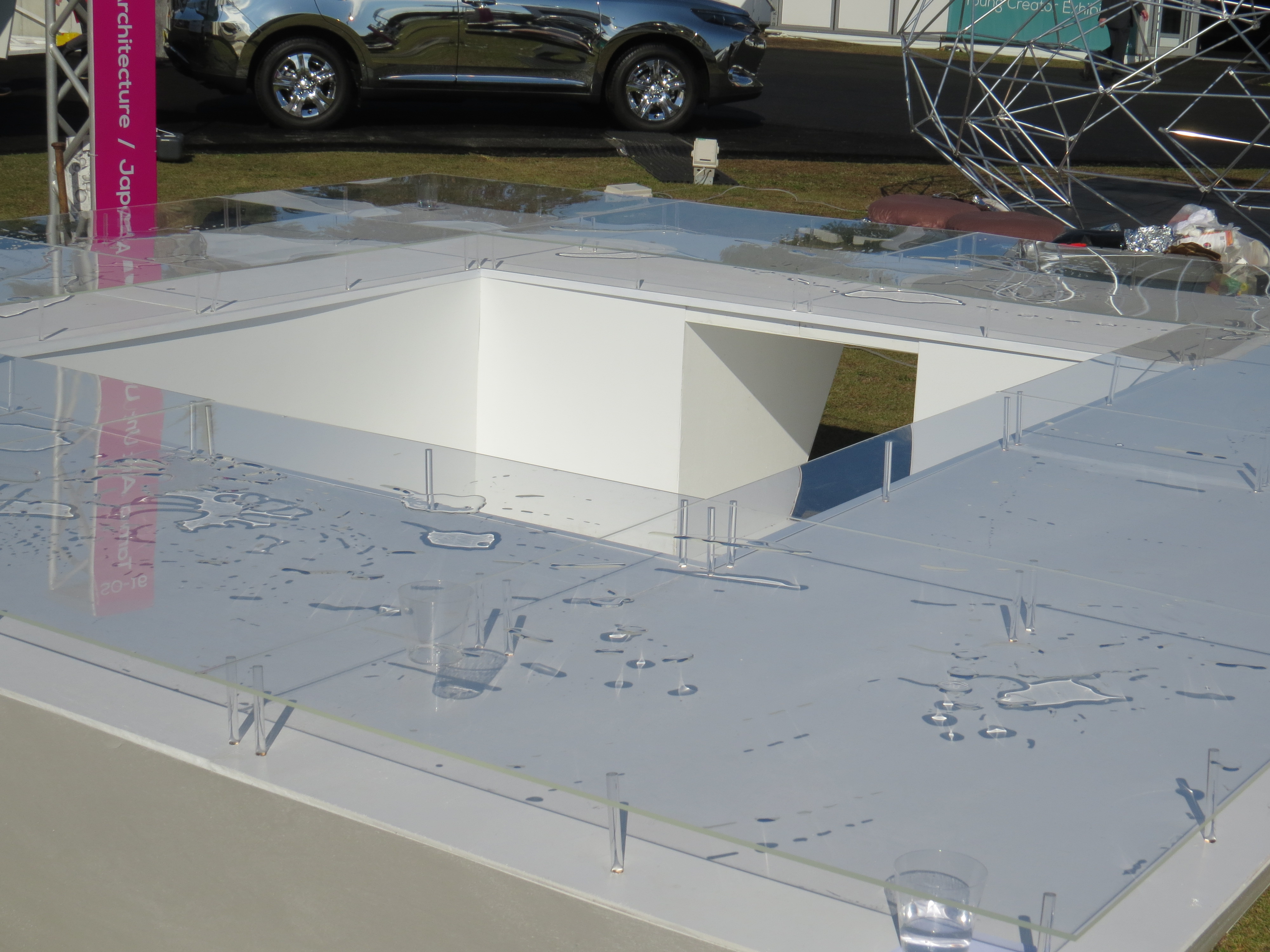 A major aim of TDW is to bundle the emerging creative energy from Asia, building a platform for young designers/artists and creators. They are doing this with the Asia Awards program which took place for the first time in 2013. There were two Asia Awards sections at TDW this year. The outdoor Schools Exhibition featured the graduation projects of some 50 Japanese and international art and design colleges. The Schools Exhibition took place for the 13th time this year. And while the majority of exhibitors were Japanese there were also some overseas schools, including the renowned Esmod International from France and the UK’s London University of Arts. One of my favourites in the Schools exhibition was a project by the Department of Space and Architecture of the Shizuoka University of Art and Culture. The students had created a water drop painting installation – sort of a collaborative artwork (I love those!). A large glass covered table was lit from below; visitors were offered glasses of water to pour onto the surface and then draw designs into the water. A simple and very beautiful idea. And it was great fun, too!