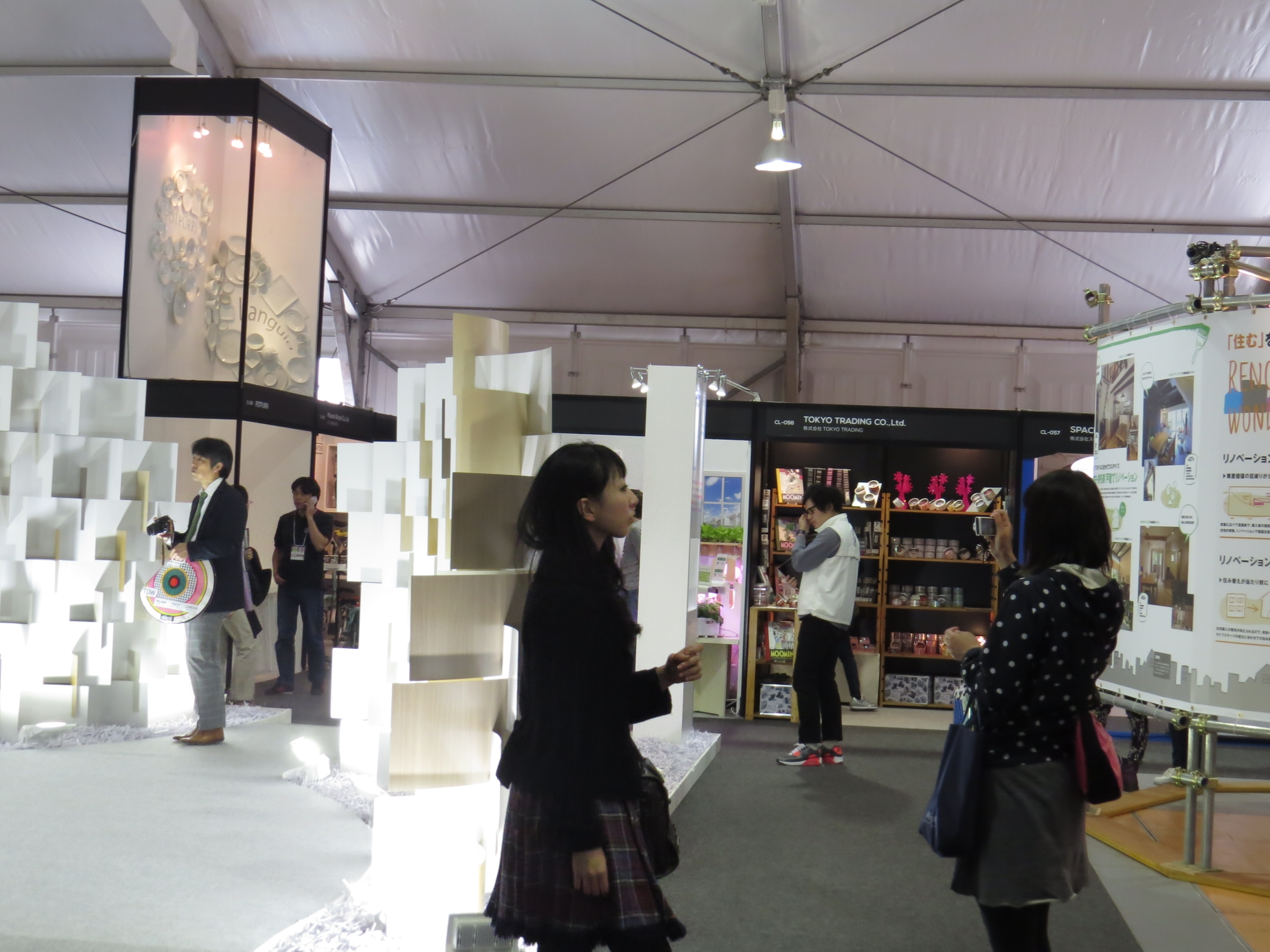 However, let’s return to this year’s TDW show in Tokyo! The festival opened on 25th October and will run until 3rd November. The location is very central, near the city’s Meiji-Jingumae shrine – get off at Shinanomachi station (JR Chuo/Sobu line), Gaienmae station (Ginza subway line), Aoyama-Itchome (Ginza, Hanzomon and Oedo subway lines) or National Stadium on the Oedo line. The biggest exhibition area was the Creative Life Exhibition tent which featured ten separate exhibition sections. Here is a list of the Creative Life areas to give you an idea of the sheer range of design projects on offer: Designboom Mart (young international artist and design labels), Genius Expo Studio (where the big names in architecture and design are holding forth), Future Lab Tohoku (a creative space for designers and citizens of the Tohoku area of Japan to discuss/create new synergies) and Robot Exhibition (robots, androids, robot costumes, media art and undersea robots).