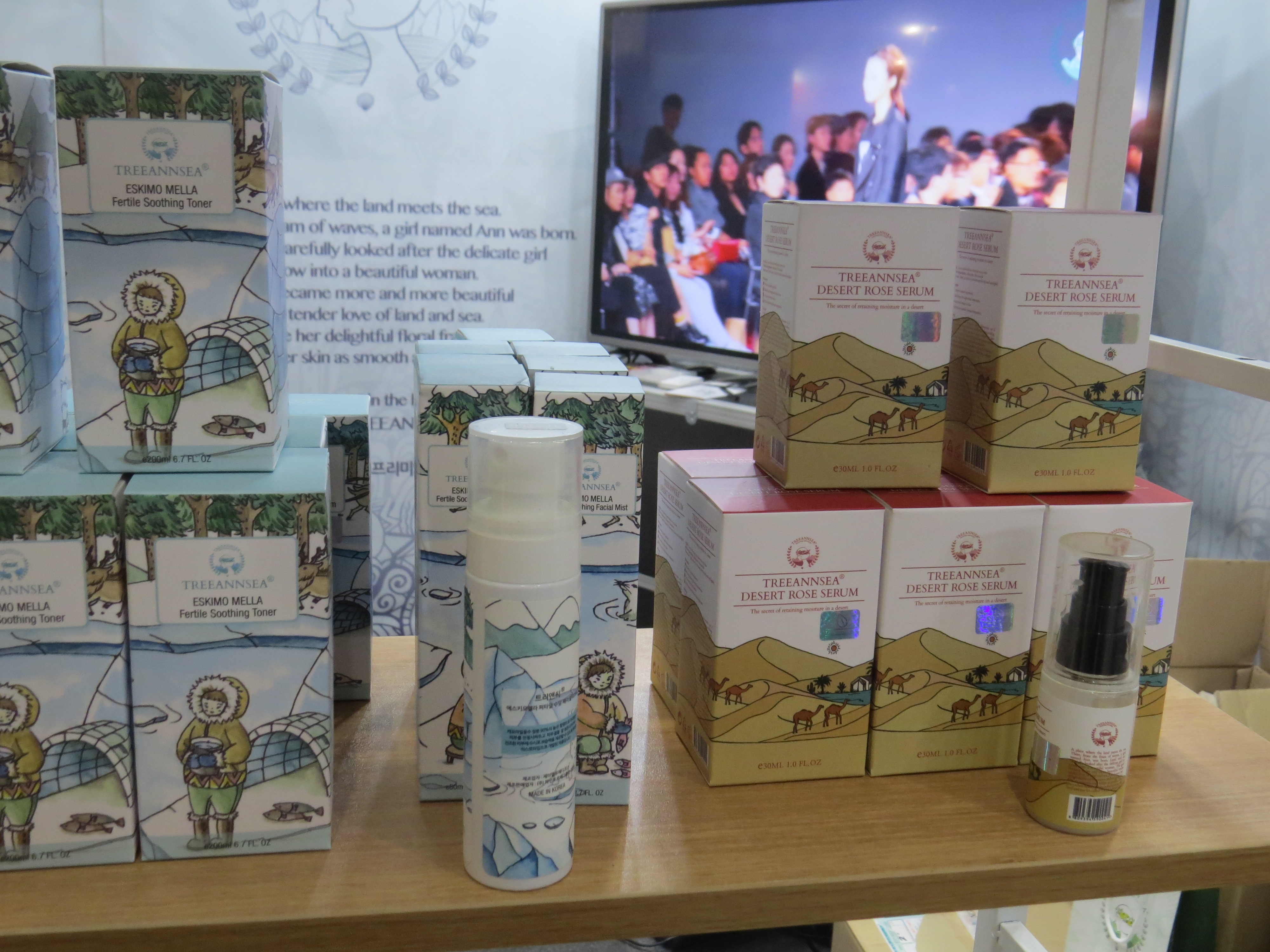 My very favourite brand at the Beauty Expo, however, was a charming organic beauty brand: Treeannsea. They have three product ranges, the 6-sku Eskimo range, the 2-sku Desert Rose series and the Madagascar range, a tamanu oil and a soap – check out the beautiful packaging! The brand is not certified but the ingredients look so good that they could easily get an Ecocert certification at least, as far as I could tell.