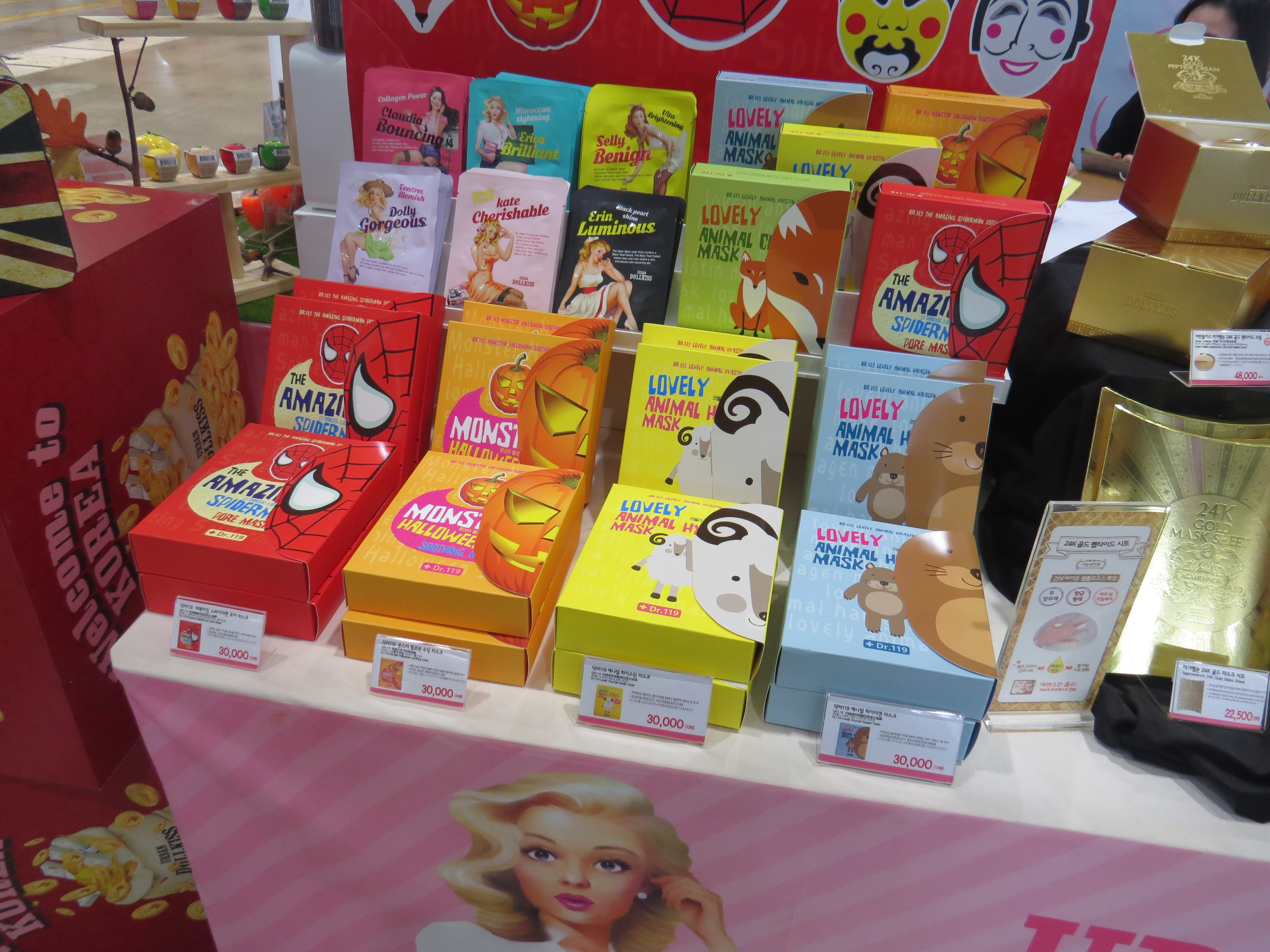 Kell Cosmetics manufactures a range of beauty brands aimed as a younger female clientele, including colour cosmetics brand Urban Dollkiss, cute animal face masks and a skin care range. The Urban Dollkiss colour cos is packaged in a 1950s retro burlesque-inspired Western design – reminiscent of Benefit – which is a look that I’ve noticed in a number of Asian makeup brands. Incidentally, I was walking though Myeung-dong area earlier today and came across an Urban Dollkiss store.