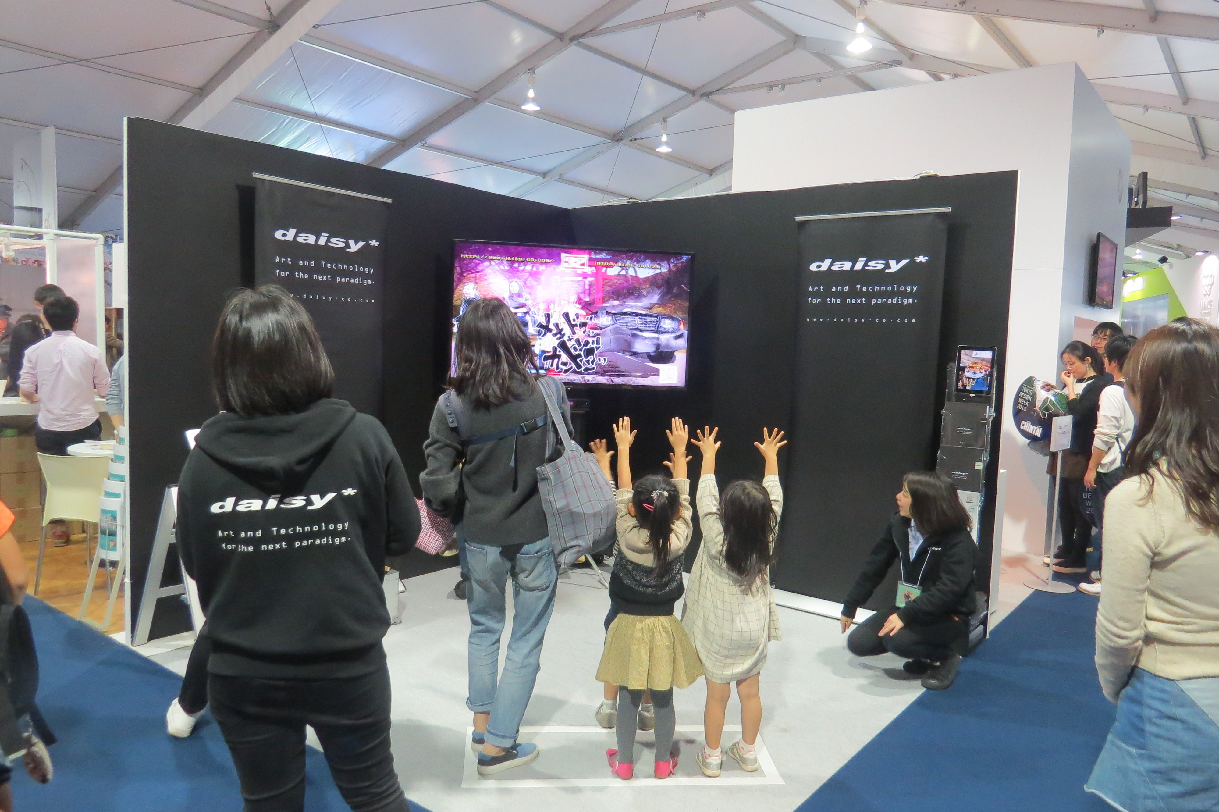 One of the main themes of TDW 2015 was “Interactiveness” – and there were a number of digital/tech companies and brands which presented eye-catching interactive projects. Ray Corporation, for example, showcased its Ball-Sensing motion-tracking project: imagine a very large screen with a background simulation of ghosts popping up all over the place. Visitors were invited to throw a soft ball at the screen to hit the ghosts. Motion sensors and a special algorithm calculate the trajectory of the ball: if you hit the ghosts, they explode. Very popular amongst the younger visitors of Tokyo Design Week!