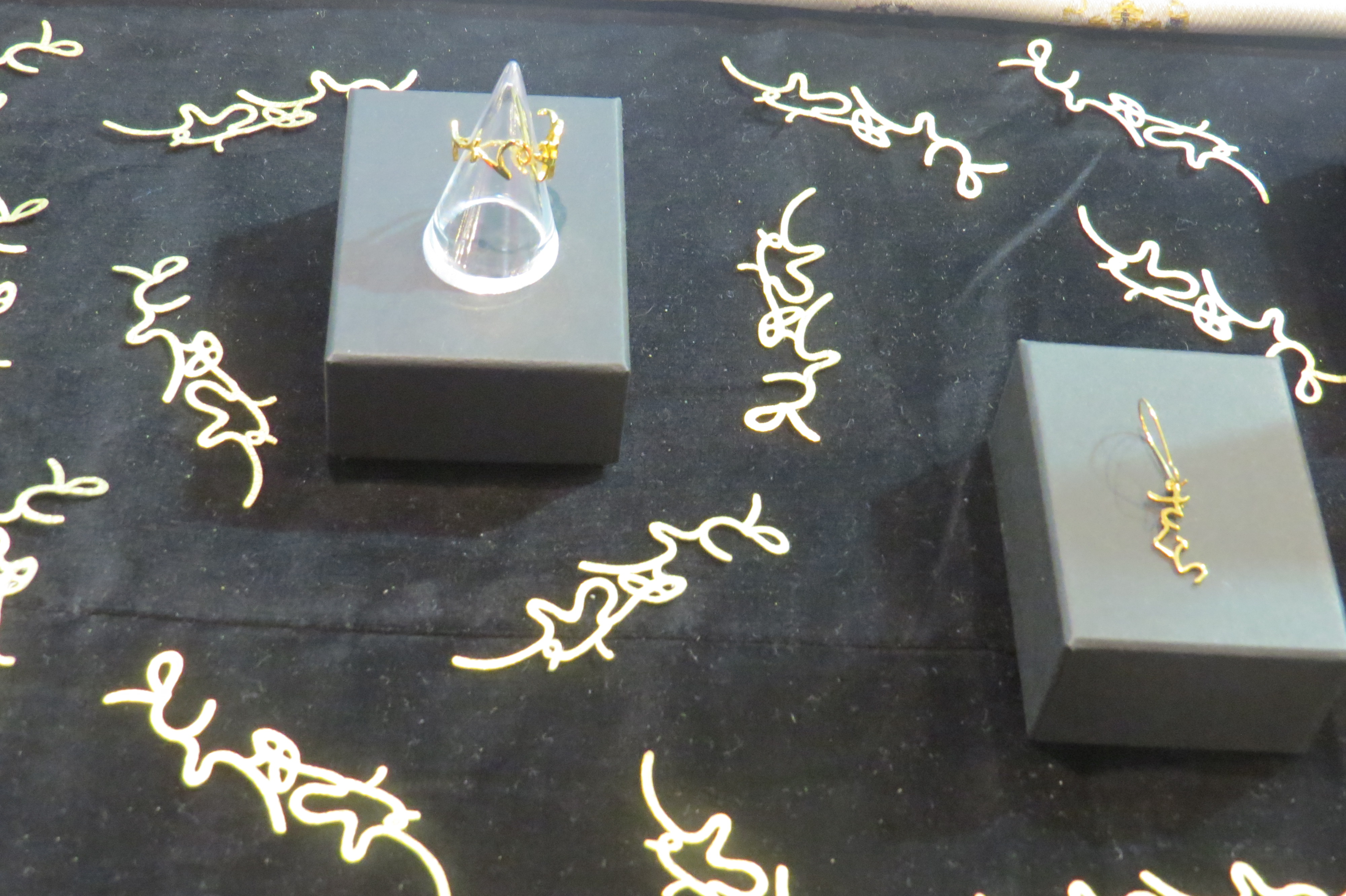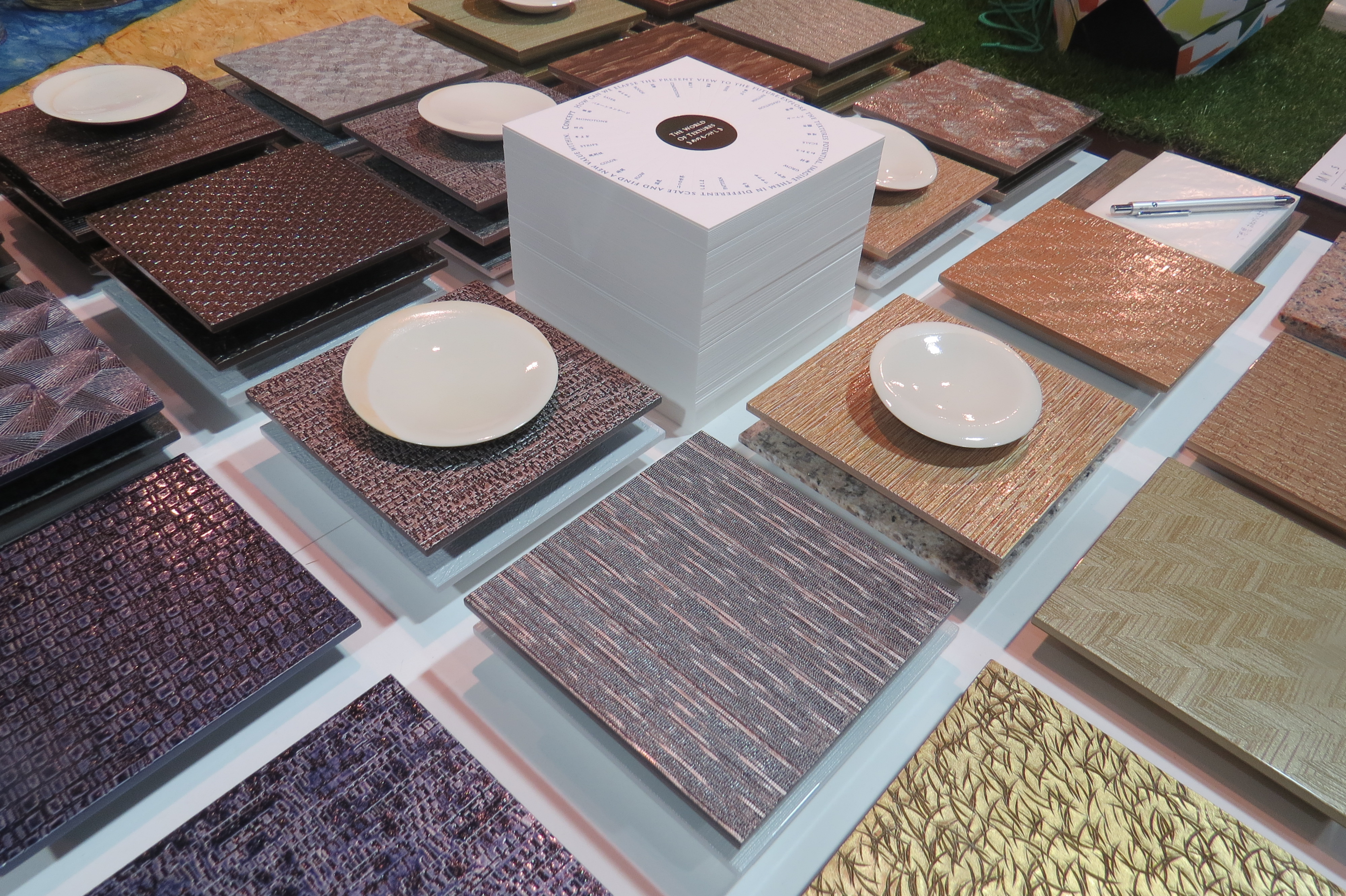 I was also intrigued by the work of Hiragana Accessories, a jewellery design label which creates delicate gold earrings, necklaces and bracelets in the shape of Japanese hiragana characters (hiragana is the one of the three Japanese scripts). However, my favourite display amongst the 100 Creators was The World of Textures by Eiji Yoshida. Yoshida’s display showed square tiles with differently textured surfaces. Beautiful.