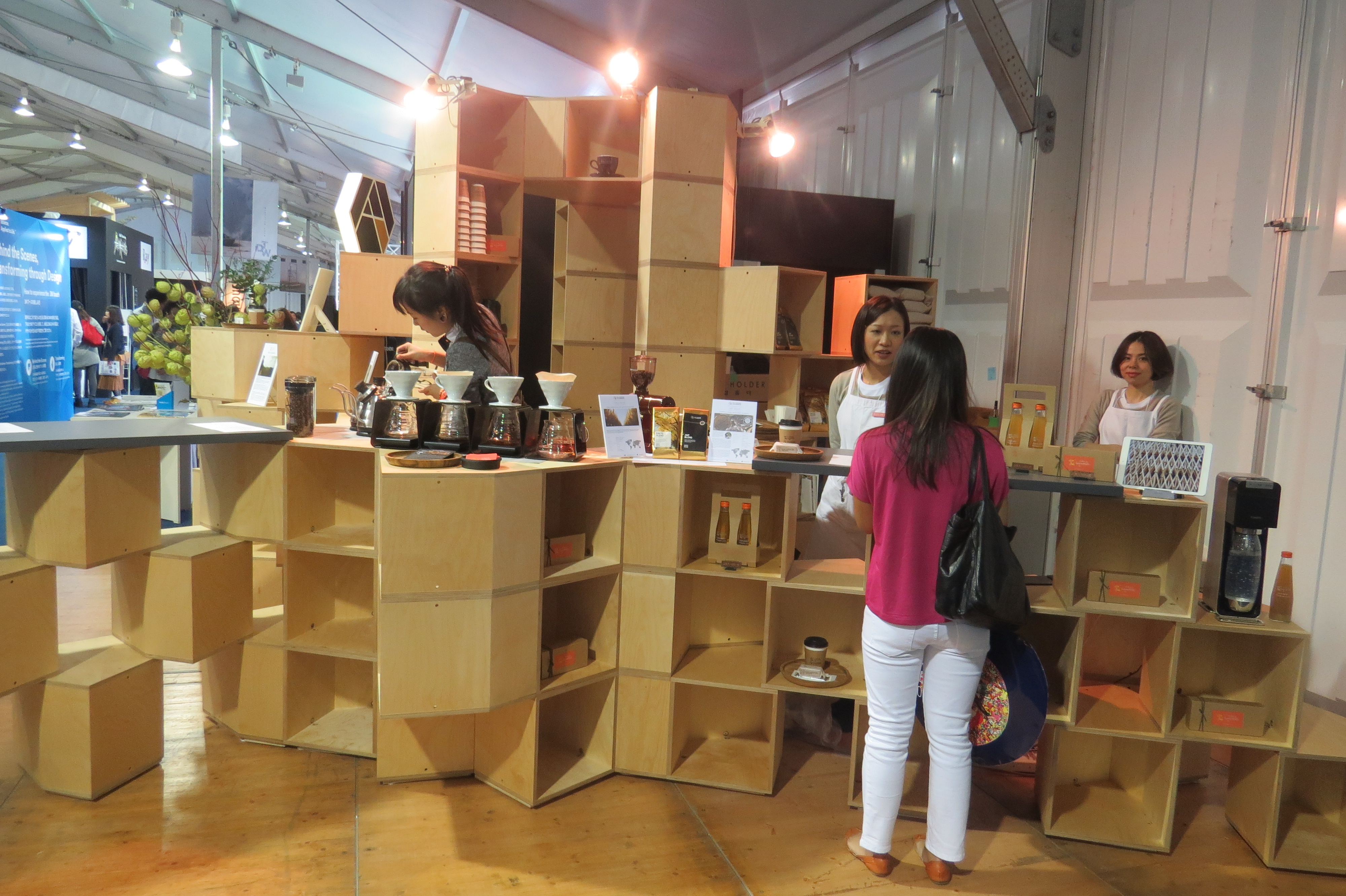 Sunnyhills, a Taiwanese cake shop and bakery which opened in 2013 in Tokyo’s trendy Omotesando area, were present with a great speciality coffee stand. The company had commissioned Hong Kong-based coffee roaster The Coffee Academics to create a special Tokyo blend to go with their signature pineapple cakes. Both of which you could buy at the stand. I rather like Taiwanese pineapple cake so I bought a set and the coffee really complemented the cakes beautifully.