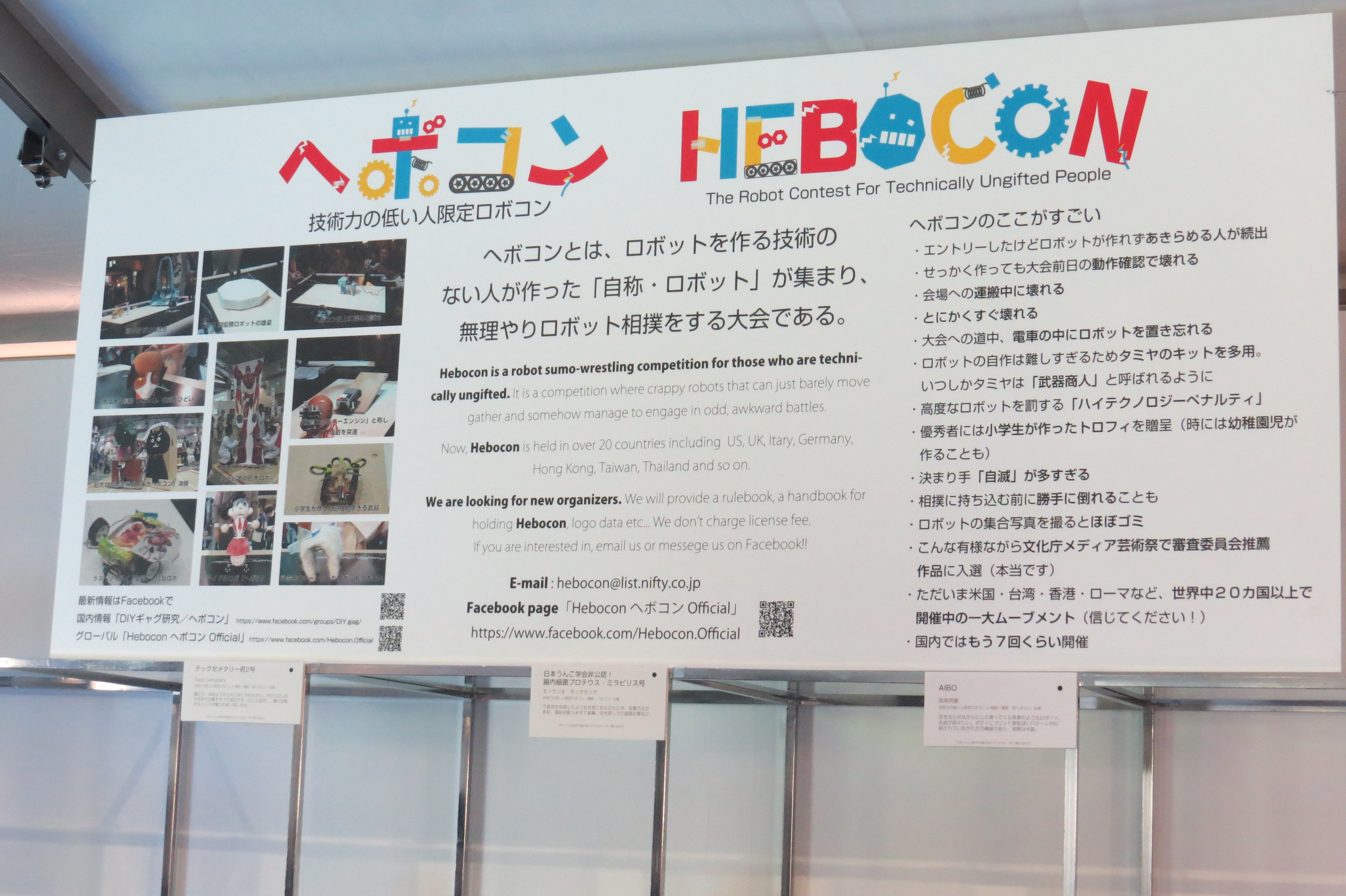 I also loved the exhibit of Hebocon, “The Robot Contest for Technically Ungifted People”. Unlike “normal” robot combat competitions which feature high-tech fighting robots, Hebocon robots are built by non-engineers. There were little robots made from plastic bottles, from felt, old Barbie dolls, cardboard…the robot creations you see at Hebocon battles can barely move (which of course is the whole point!). They showed this short documentary: small, weird and bumbling robots bumping into each other and promptly falling over…it was incredibly funny and the visitors who were standing around this exhibit were giggling non-stop. Low-tech robotics!
