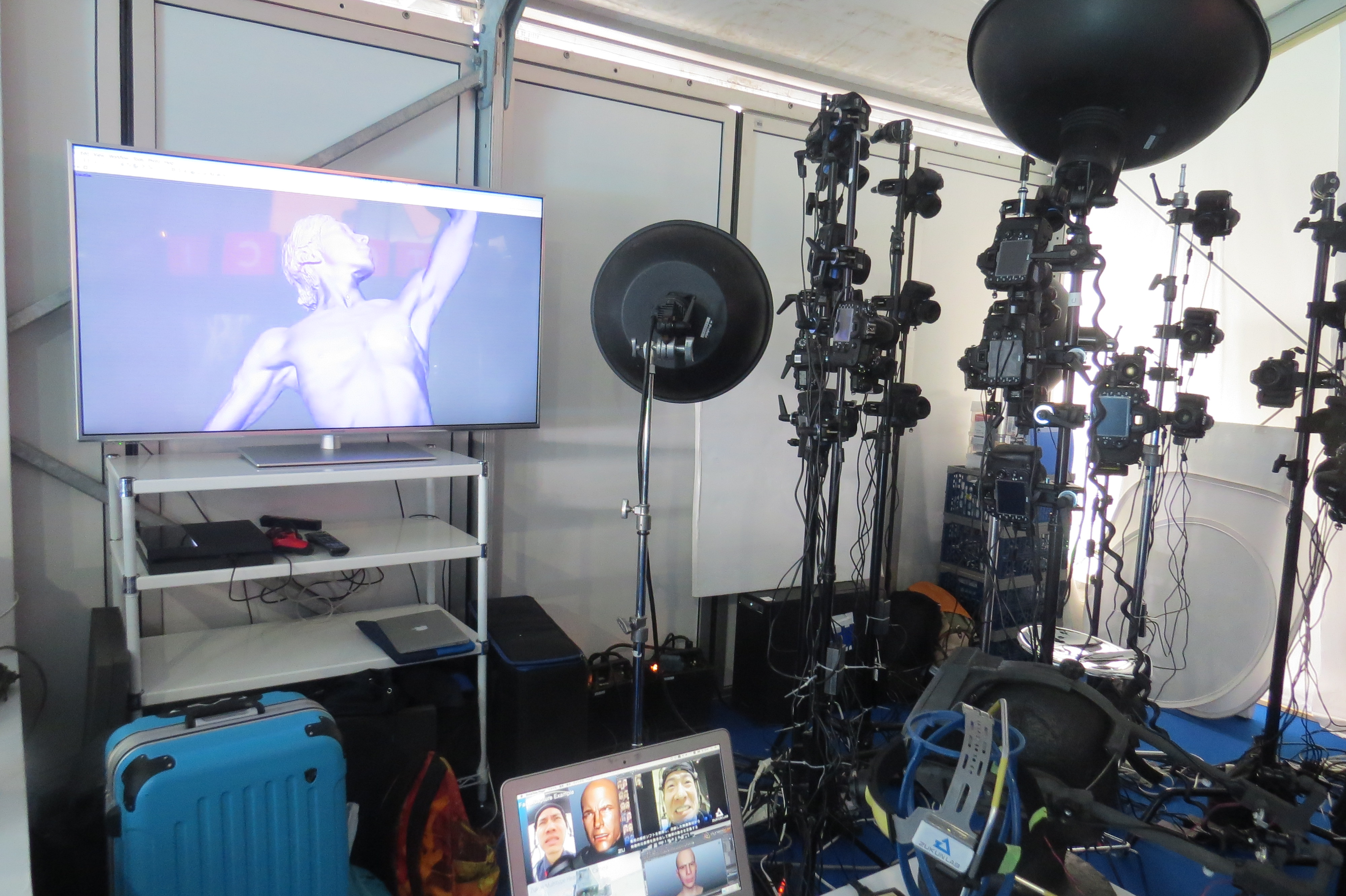 At TDW they presented their technical set-up: a swivel seat in the middle of a multitude of cameras which record the exact shape of the person or object and create an almost perfect image. Facial scanning is done with 40 cameras, body scanning requires almost twice the number, 84 cameras. There was a short documentary about the scanning process and the end result – fascinating.