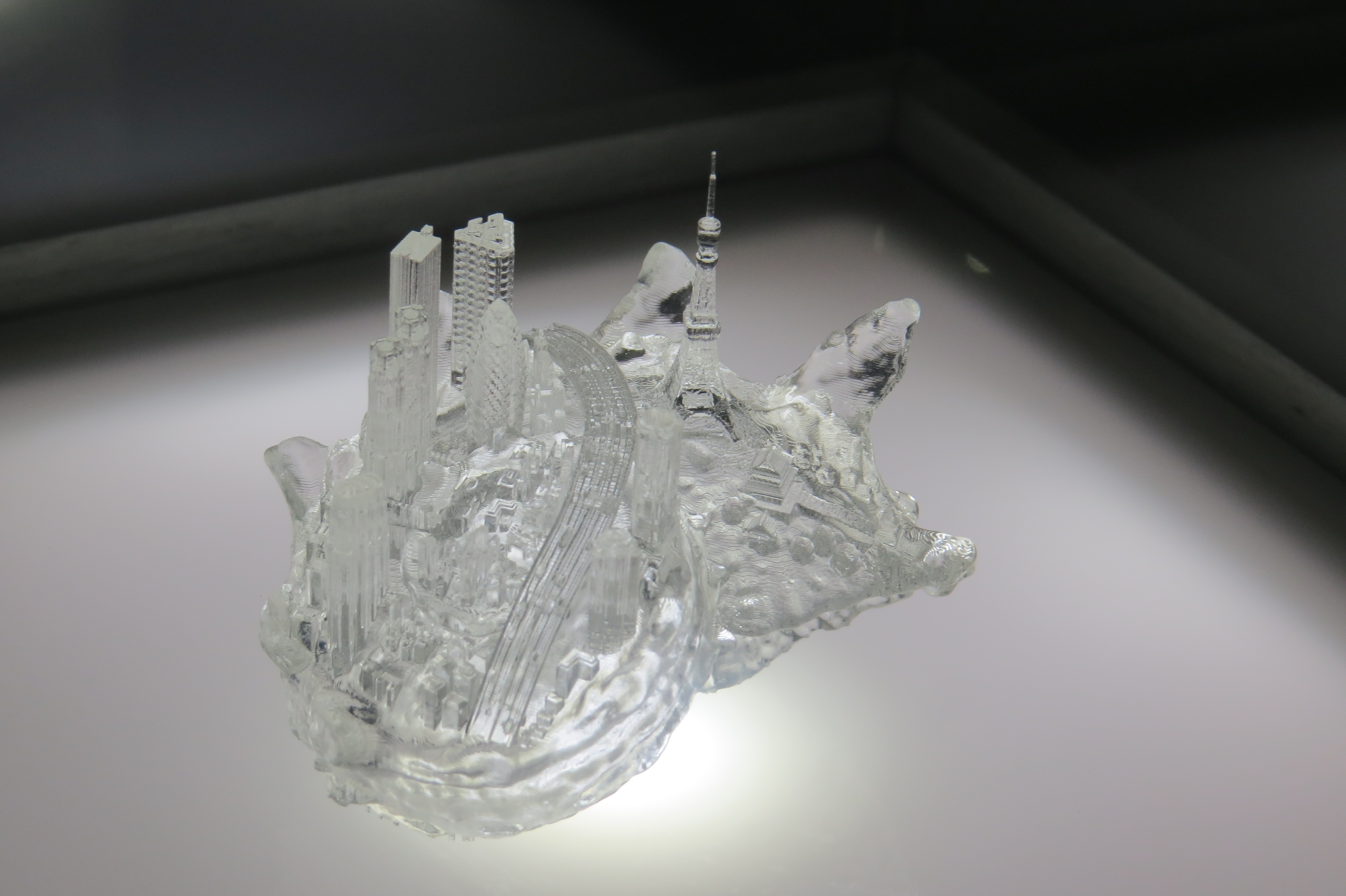 I also liked MMI (Musical Mechanical Instruments), a “machine band” created by Tomoaki Yanagisawa from Rhizomatiks and Kimura from Tasko – see picture above! And Tokyo University of Arts graduate Aki Inomata showed a rather cool project: “Why not hand over a “shelter” to a hermit crab?”. With a 3D printer, Inomata created miniature cityscapes which she offered as a temporary shell to hermit crabs. There was a little aquarium with a live hermit crab that was carrying a little transparent city shell.
