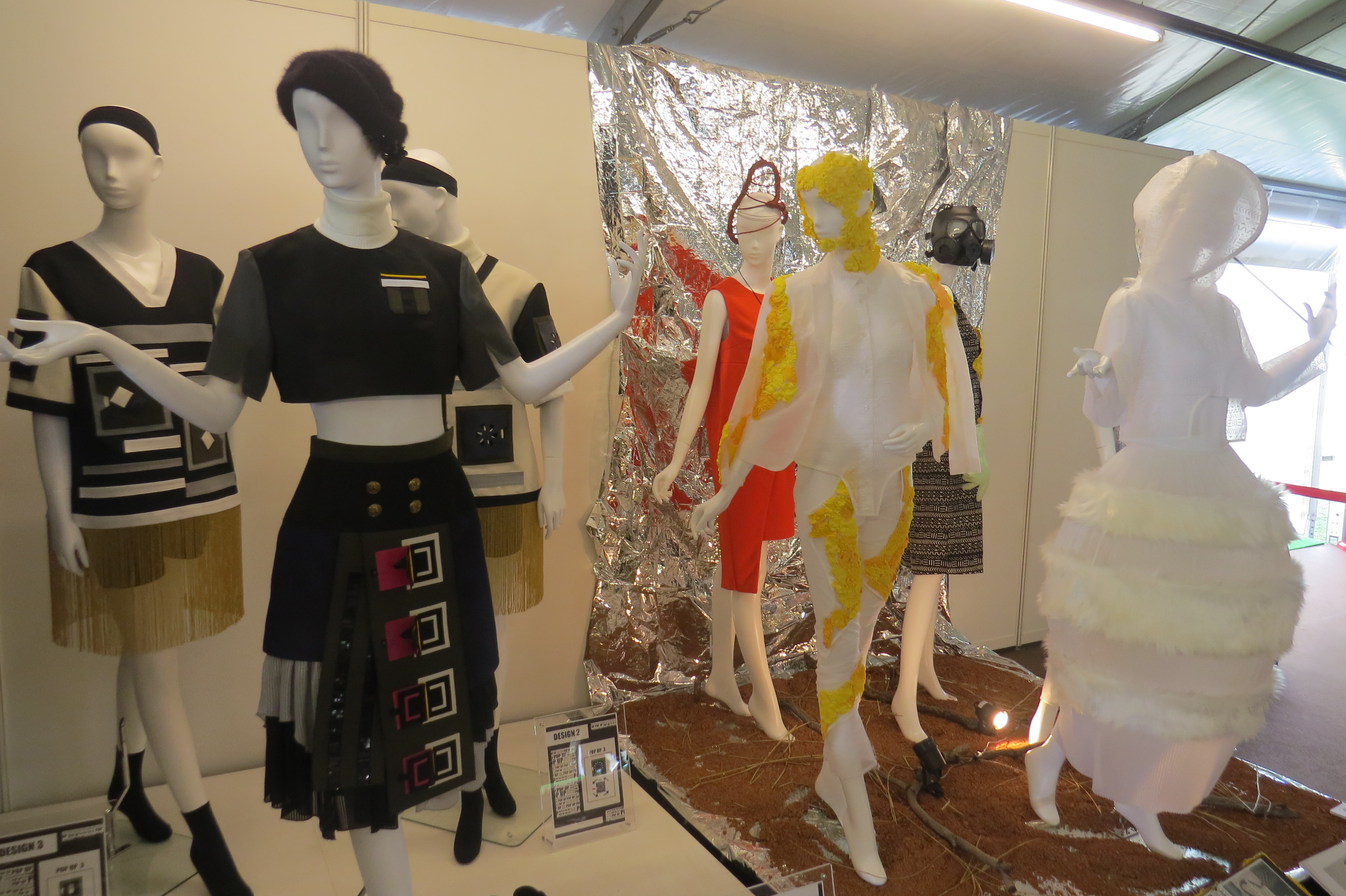 Like last year, a number of festival sections such as the Young Creators and the Schools Exhibition took place in separate tents which adjoined the main Creative Life exhibition. I particularly liked the fashion design exhibits: the young designers who showed their creations in the exhibition worked with very different fabrics. Kenjo Kawasumi cuts patterns into foam clothes (you can see him in the picture below!), Satoru Sasaki’s designs are inspired by African tribal prints and Kasumi Ohta’s “pop-up fashion” features flaps, pockets and trims that are can be lifted like the flaps in a pop-up book.