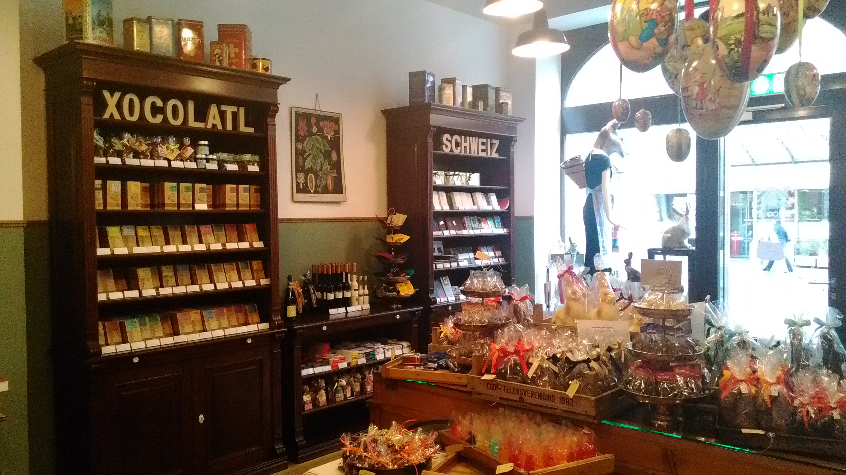 Now, Switzerland is famous for its milk chocolate (you might also be familiar with the iconic Toblerone triangular chocolate bars?) and just about any supermarket and souvenir store sells various milk chocolate tablets. Xocolatl is different: they are a specialist retailer and offer a spectacular portfolio of chocolate bars from around the world – many of these are niche brands; some are organic and/or fair trade and all are of very high quality. No Lindt or Sprüngli chocolates here! Xocolatl’s brand selection changes often since the owners frequently add new brands to the line-up.