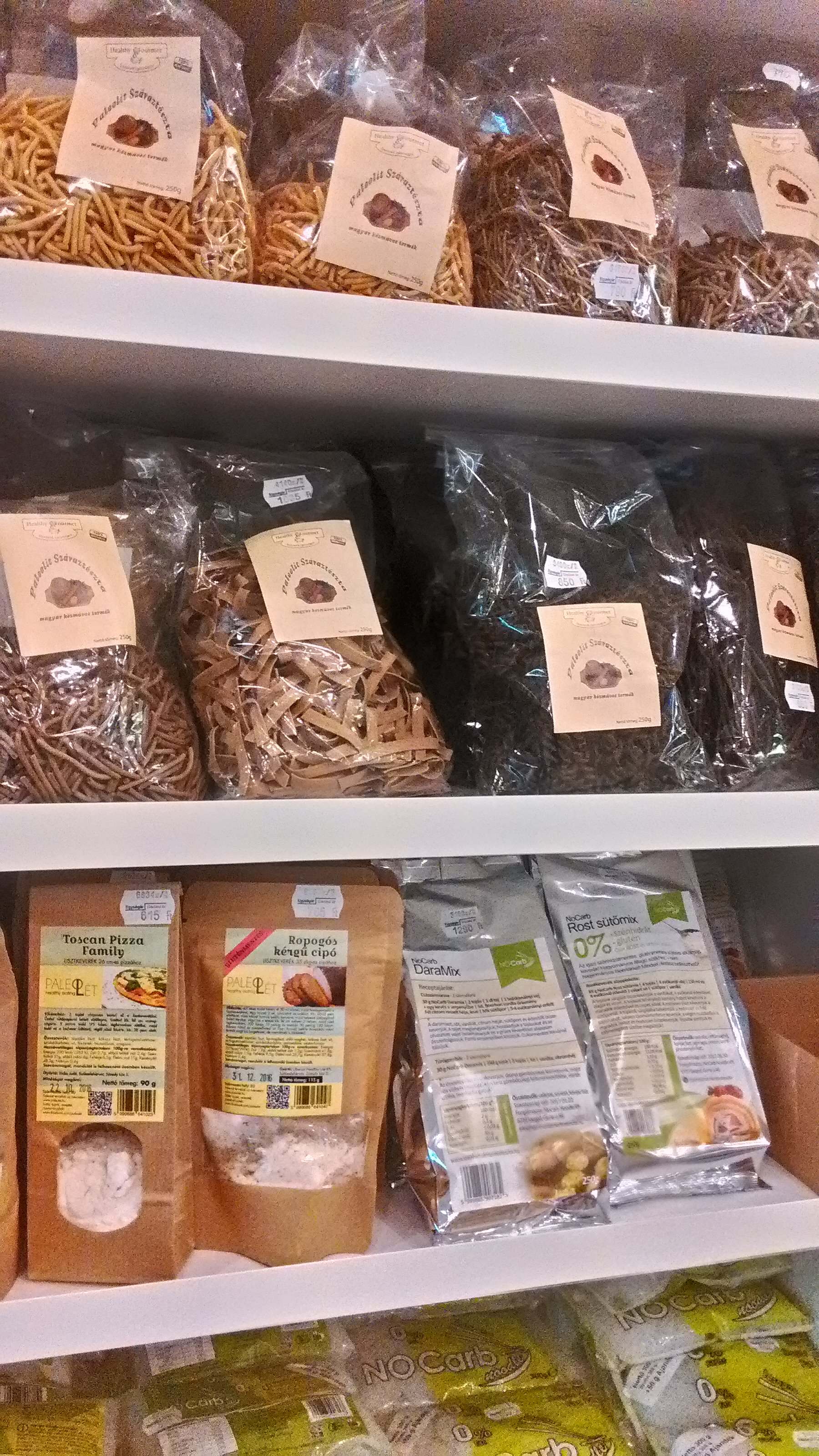 Bio-Barát sells organic delicatessen foods, Paleo foods, Raw foods and Vegan foods; there were entire shelves dedicated to flour substitutes, sugar alternatives (stevia, xylitol, erythritol, coconut sugar) and pasta alternatives (algae pasta, konjac pasta, chestnut flour pasta), dried herbs, flowers and spices, nuts and dried fruits, nutritional supplements, Superfoods, all the way to organic cosmetics. Plus a shed-load of Raw, Paleo, Vegan and sugar-free confectionery and snacks.