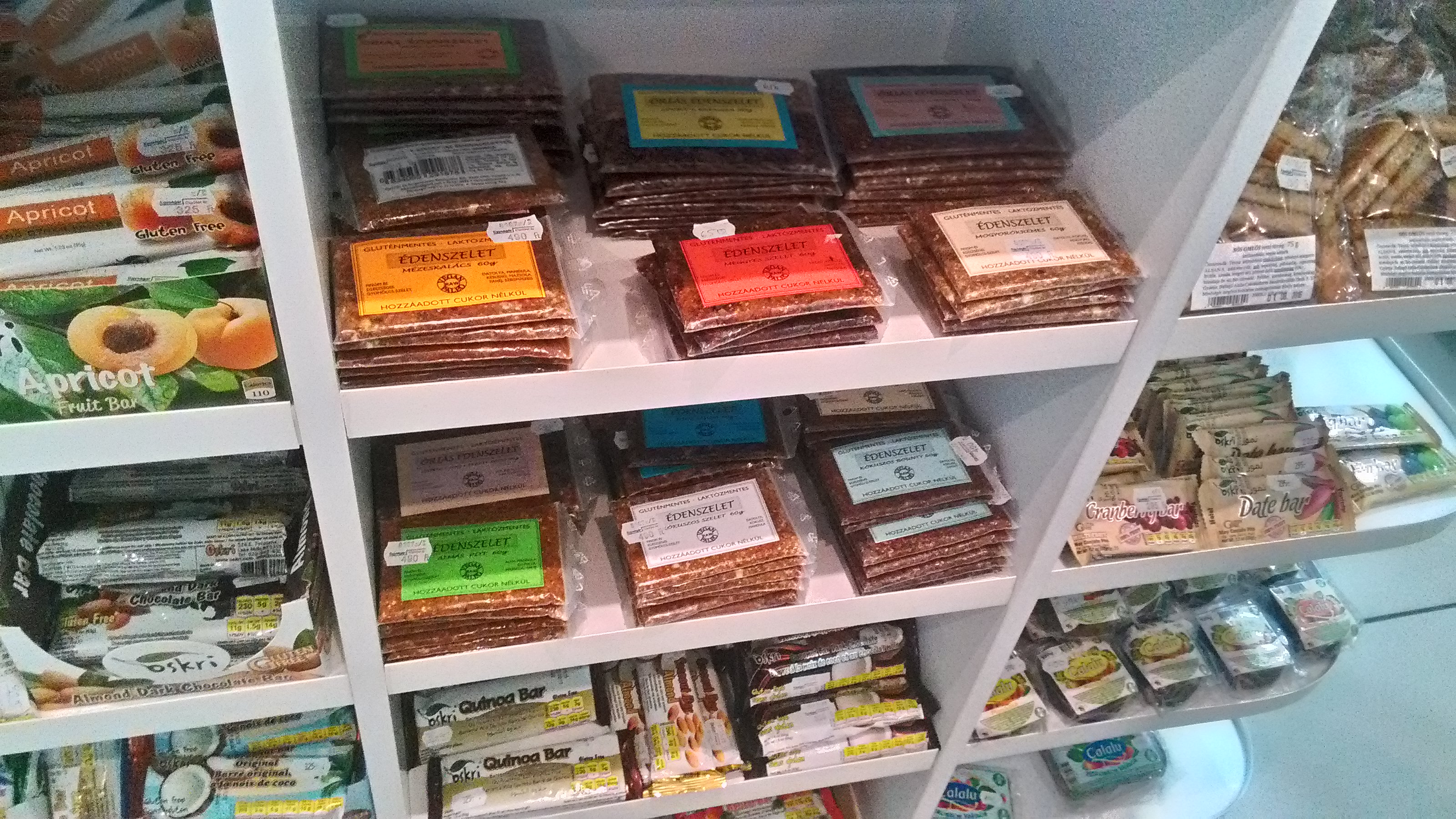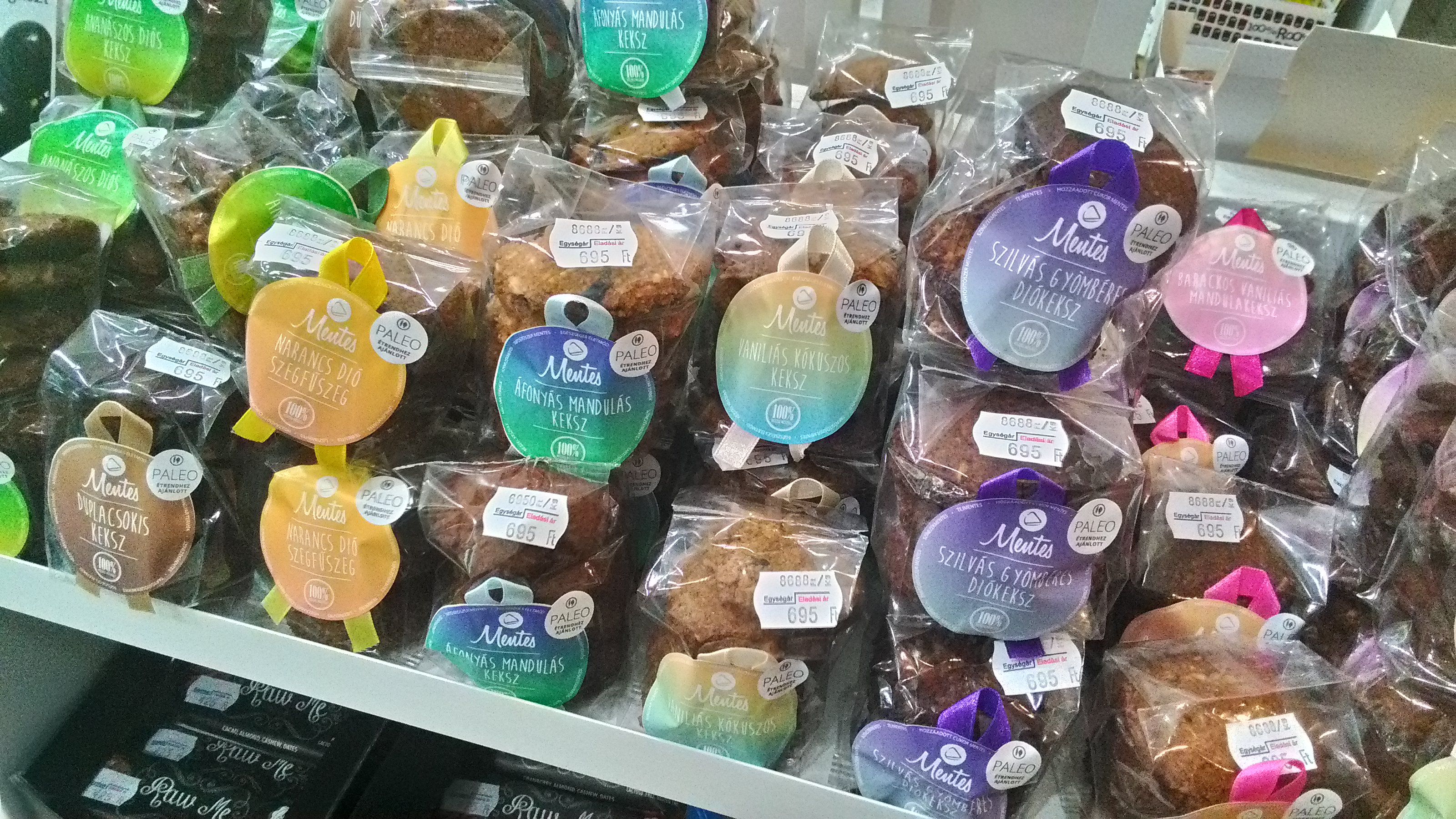 I was also struck by the presence of Paleo products in Budapest – I saw quite a few bakeries that offered Paleo cakes (advertising this fact on large signs in the store window) and every organic store that that I visited carried Paleo confectionery and snacks brands. Gluten-free was another product claim which I saw in various store/café windows, as was Vegan – I can’t read Hungarian, but “gluténmentes” as a claim is pretty much self-explanatory! And Vegan is “végan”.