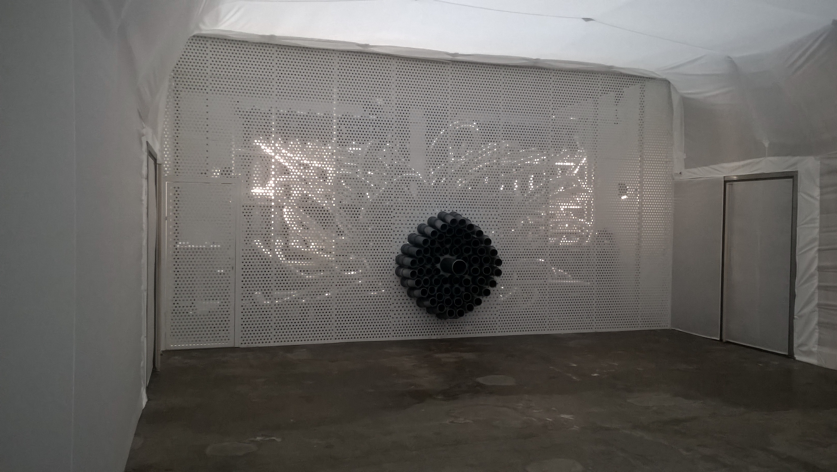 The scent notes are streamed through the black “pipes” as separately adjustable air streams. And this is what make the Smeller so remarkable: you can program entire scent sequences, a series of individual notes that are diffused in a particular order, at various speeds and at different times. The tent walls have tiny little nozzles distributed at regular intervals; these nozzles blow fresh air into the room which helps to transport the scent notes throughout the entire space.