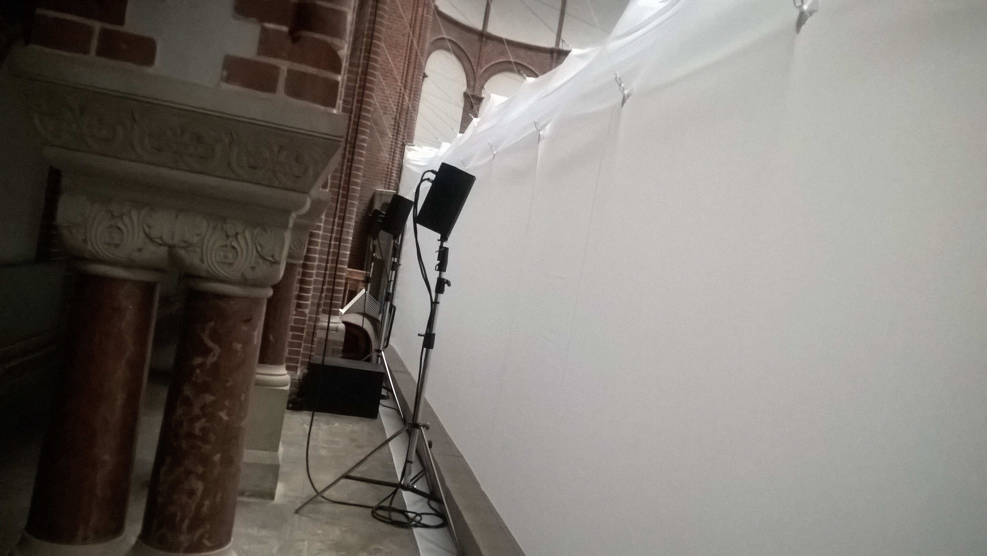 As you can see in the pictures above, the olfactory organ looks a bit like a silver kraken; Georgsdorf often describes his creation as a fragrance sculpture/art installation rather than a “technical instrument”. For the Osmodrama festival, the organisers put up a white tent inside St. Johannes church. You enter through one of the tent doors and take your place on one of the chairs. Most of the actual organ is hidden behind a thin perforated steel wall. The black tubes (the “organ pipes”) that extrude into the room diffuse the scents; once the performance is under way and the lights are turned down, the other half of the Smeller is illuminated so you can see the silver “arms” of the kraken.