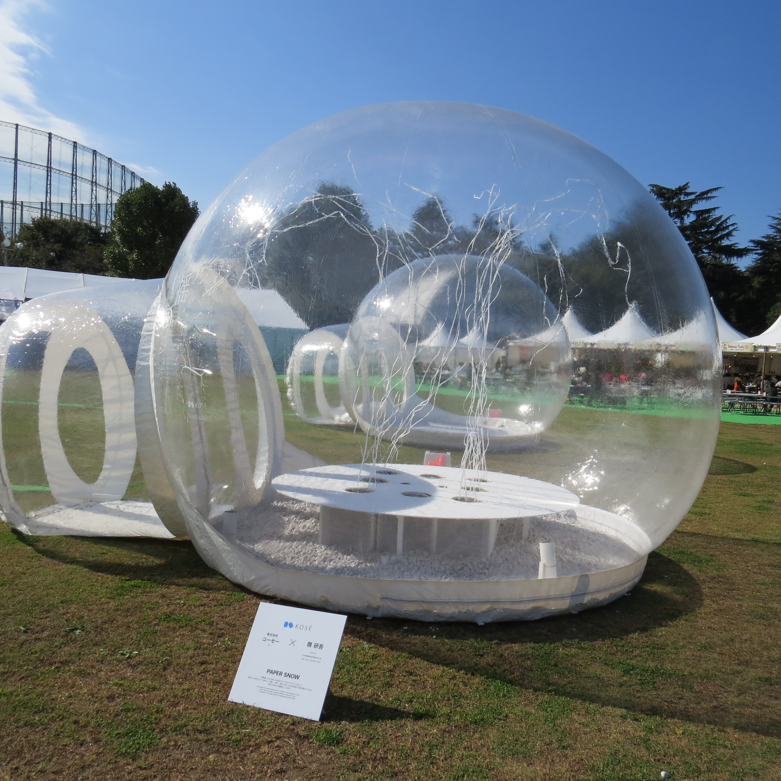 I particularly liked the Paper Snow Air Tent: Japanese architect Kengo Kuma had designed an installation of fluttering white paper streamers in cooperation with beauty company Kosé – the installation was supposed to evoke the white transclucency of Kosé’s ultra famous Sekkisui anti-ageing skin care range. Another Air Tent Ballon by Kuma featured drifts of paper flakes – beautiful. I saw pics of the tents at night and they look stunning when it’s dark outside.