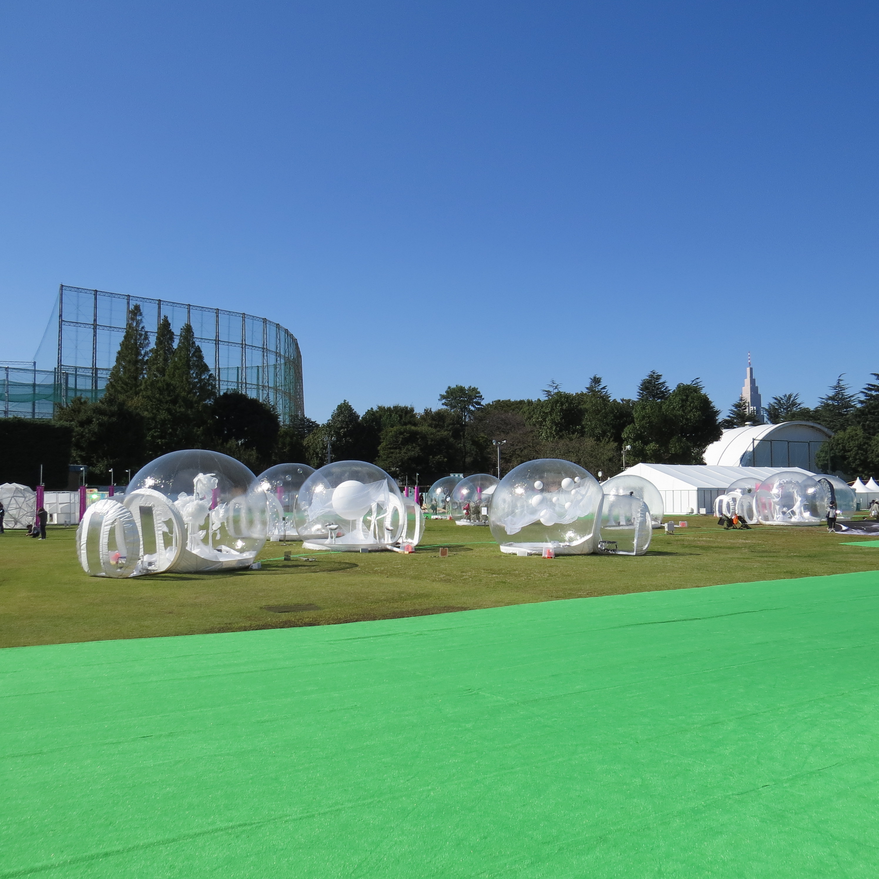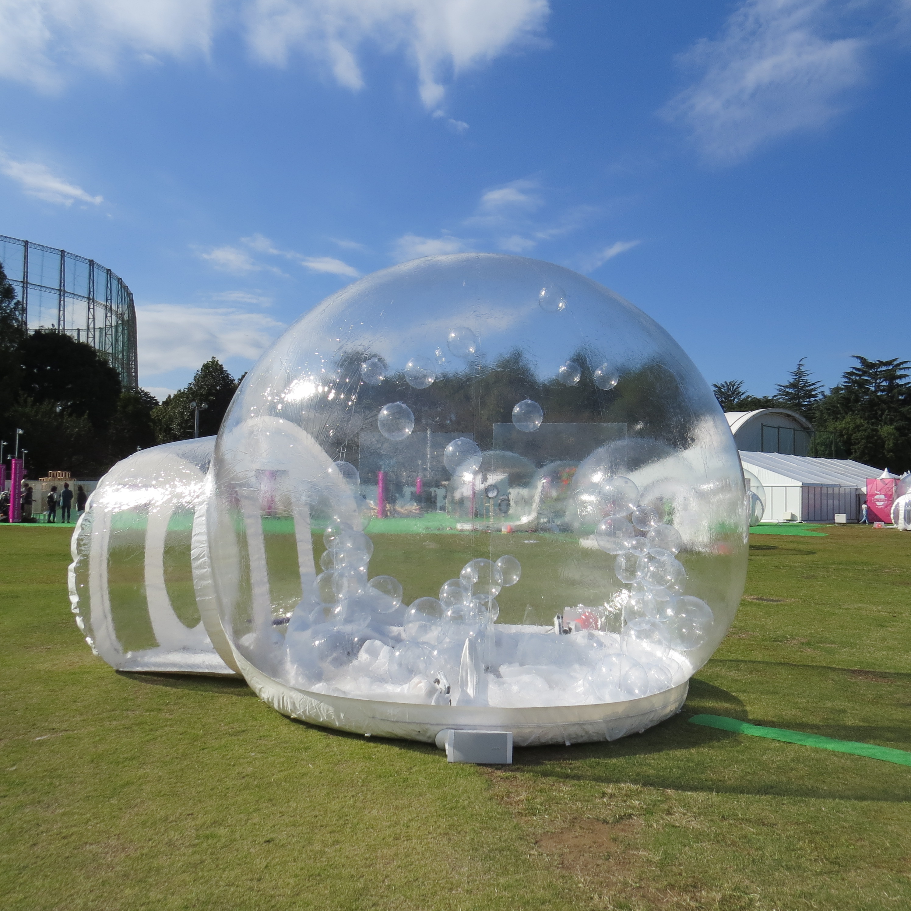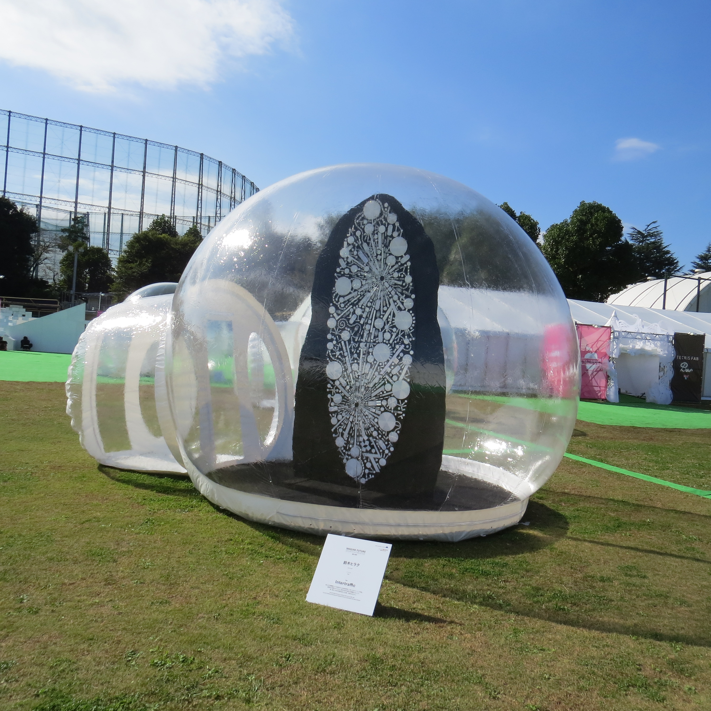 The main focus of the outside area this year was the Air Tent Exhibition: ten transparent balloon bubbles that featured different installations inside them. Contemporary artist Noboru Tsubaki from the Kyoto University of Art and Design created a chain of glowing elements while Yoichiro Kawaguchi, a CG artist from the University of Tokyo, came up with super colourful and crazy looking sculpture installation.