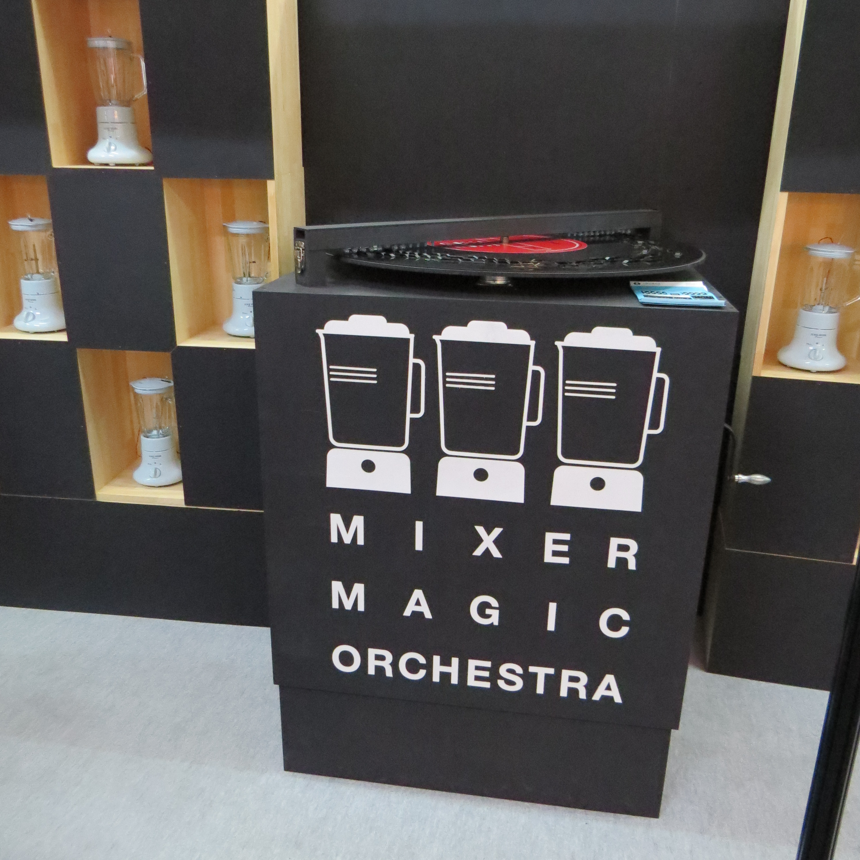 One of my favourite exhibits in the School tent was the Mixer Magic Orchestra from Osaka University of Arts: 24 juice mixers are connected to a music box turntable which looks like a giant vinyl disk. You turn the handle and the juice mixers start to play Twinkle Twinkle Little Star with different mechanical sounds. Mesmerising and also a bit strange but what an idea! A kitchen mixer orchestra – why not?! Kudos!