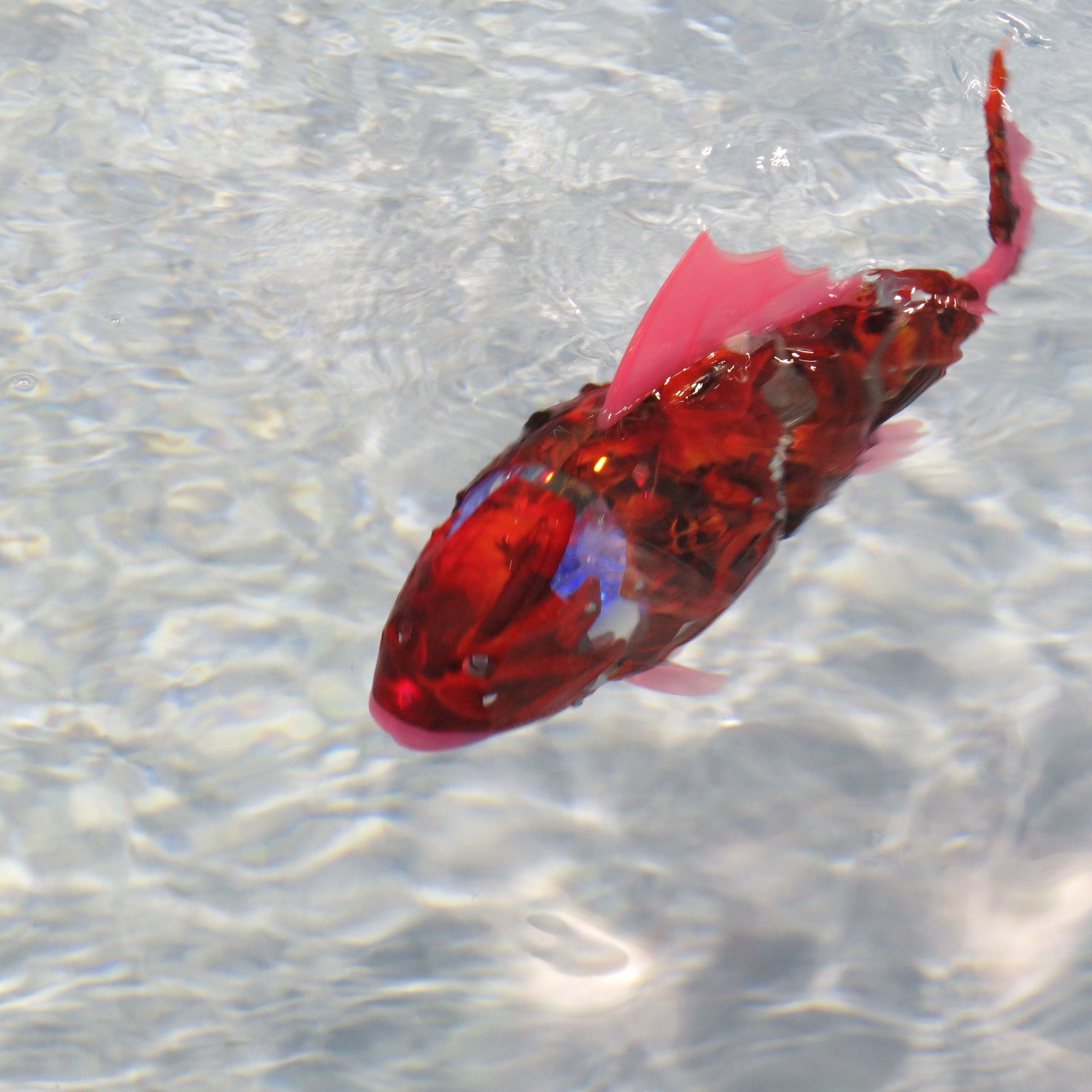 At TDW Airo demonstrated two Miro carp which swam around in a water-filled basin. They really moved exactly like fat koi carp, it was amazing! Glowing eyes, the skeleton lit up bright blue from the inside. The Miros are equipped with LED sensors in the eyeballs and the nose, plus sensors all around the head of the carp. The body has three joints (I think); inside is an electronic air bladder which allows the carp to swim up and down, it can also swim right and left and, as I mentioned, they look amazingly life-like. I want a Miro carp!!