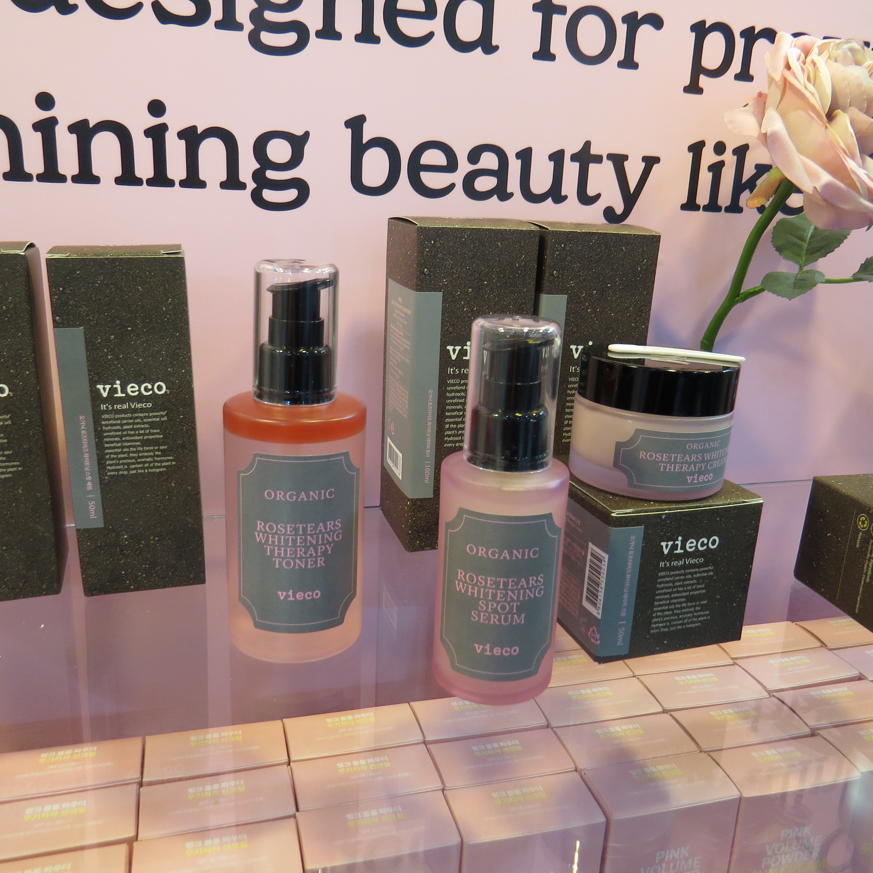 Another familiar face at the trade show was Korean natural beauty brand Vieco. I had first met Vieco at Cosmoprof Asia 2014 and I like the company’s beauty products. At Cosmoprof 2016, Vieco presented several relaunched skin care ranges, including the Rosetears Whitening range which was introduced in October 2016. The product range offers a pink-tinted powdery sun cream, a toner, spot serum, skin care cream and face oil all formulated with rose flower and rose stem cell extracts.
