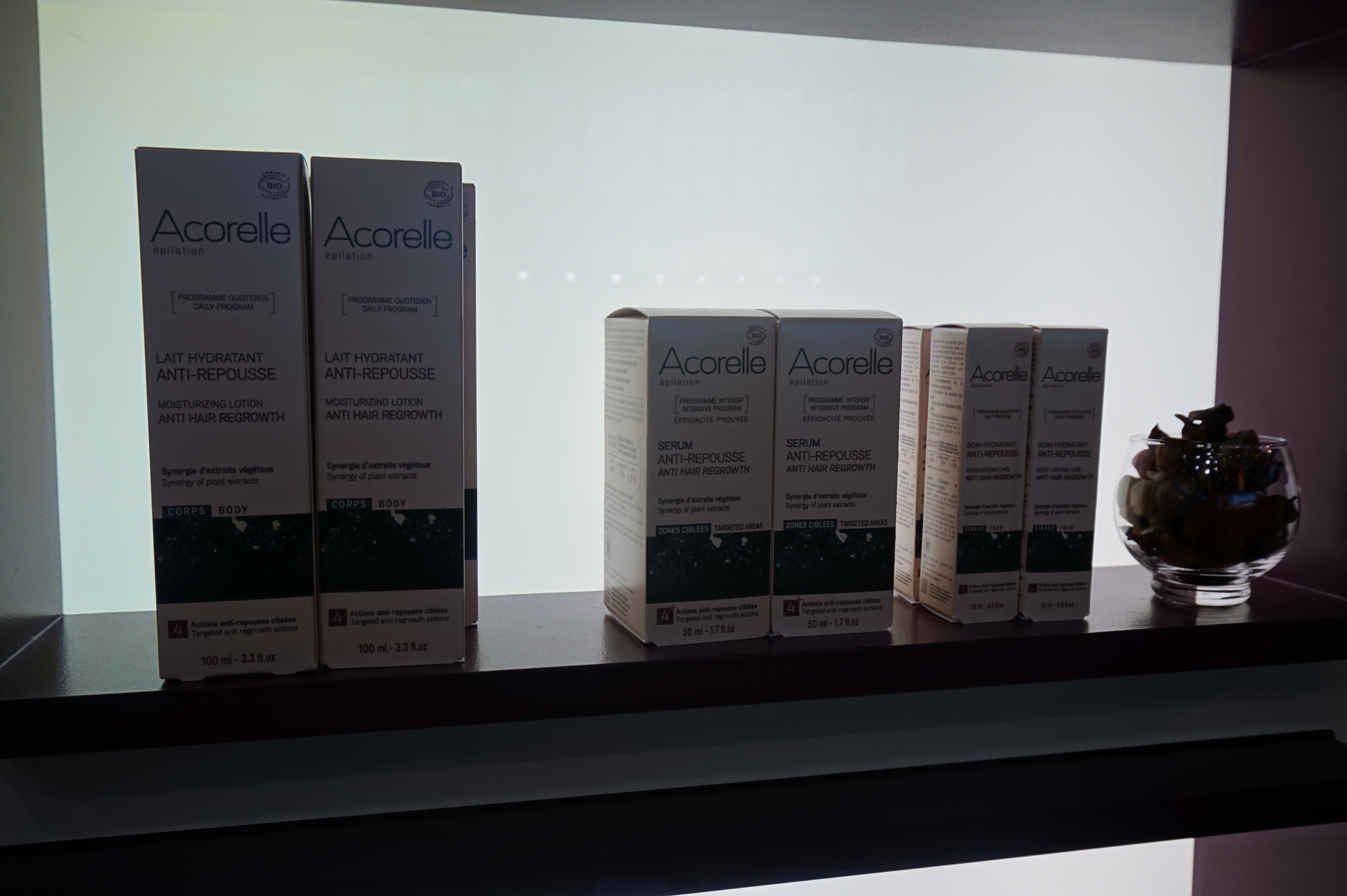 Acorelle, founded in 2005, is from the South West of France. The company specialises in depilatory products, especially waxing products, and sun care but they also have a range of skin and body care. One of their new launches was particularly interesting: the 3-sku Anti-Repousse range is an anti-hair growth skin care range. A few years ago, body lotions with ingredients that slowed down hair growth on the legs were rather popular in Germany – quite a few mainstream brands came out with hair-minimising body care products – but these kind of products have since disappeared from the market. And I’ve never seen any anti-hair growth cream products for the facial area.