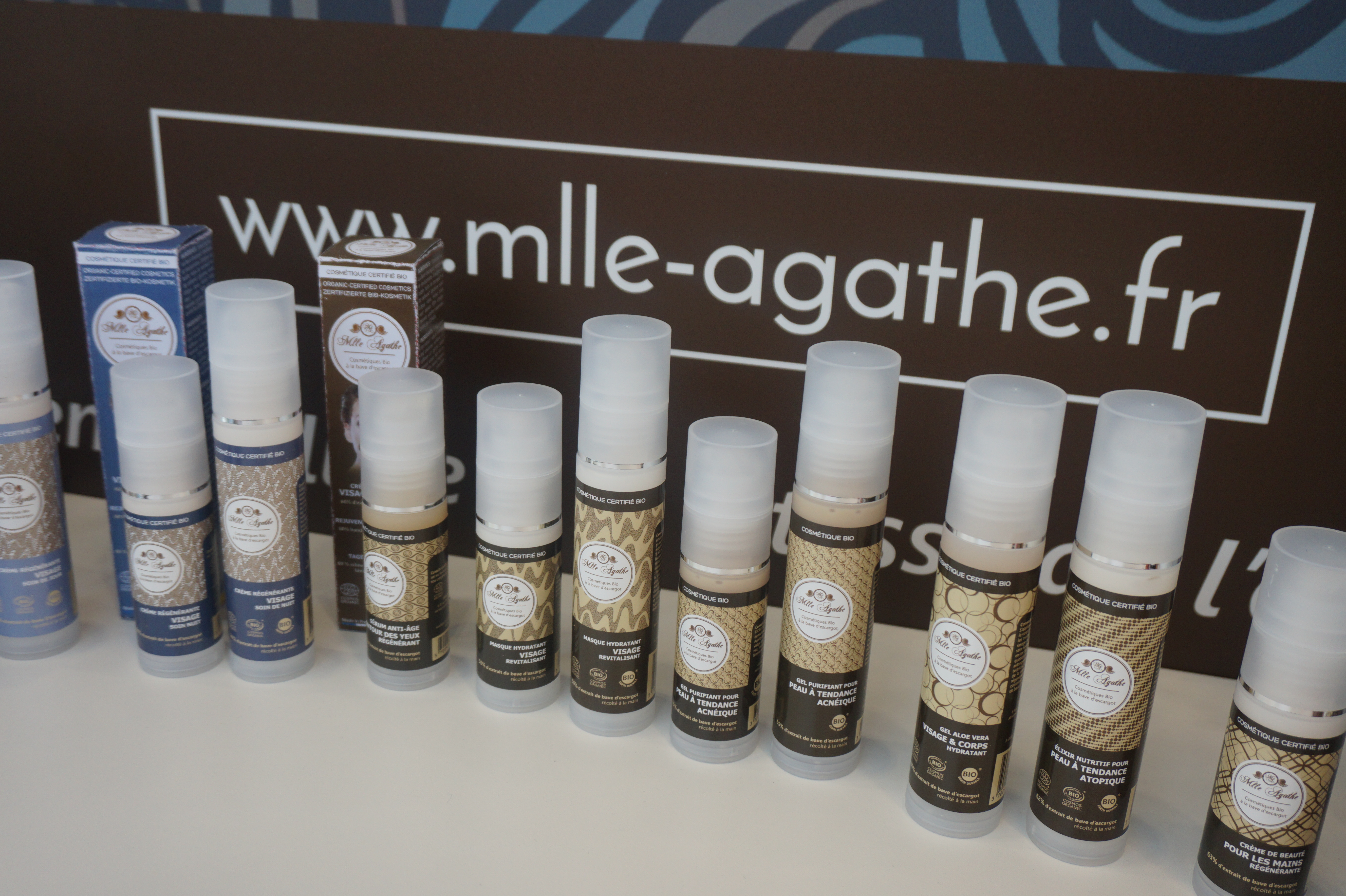 Another cool new snail brand was Mlle Agatha from France. The company was founded in 2013, products were certified organic this January and they were at Vivaness to find German distributors. The brand’s line-up includes 6 face care products, four body care products, five bar soaps and a shower gel. All products are formulated with at least 60% snail secretion filtrate combined with various plant extracts (the snail slime is harvested by hand, by the way).