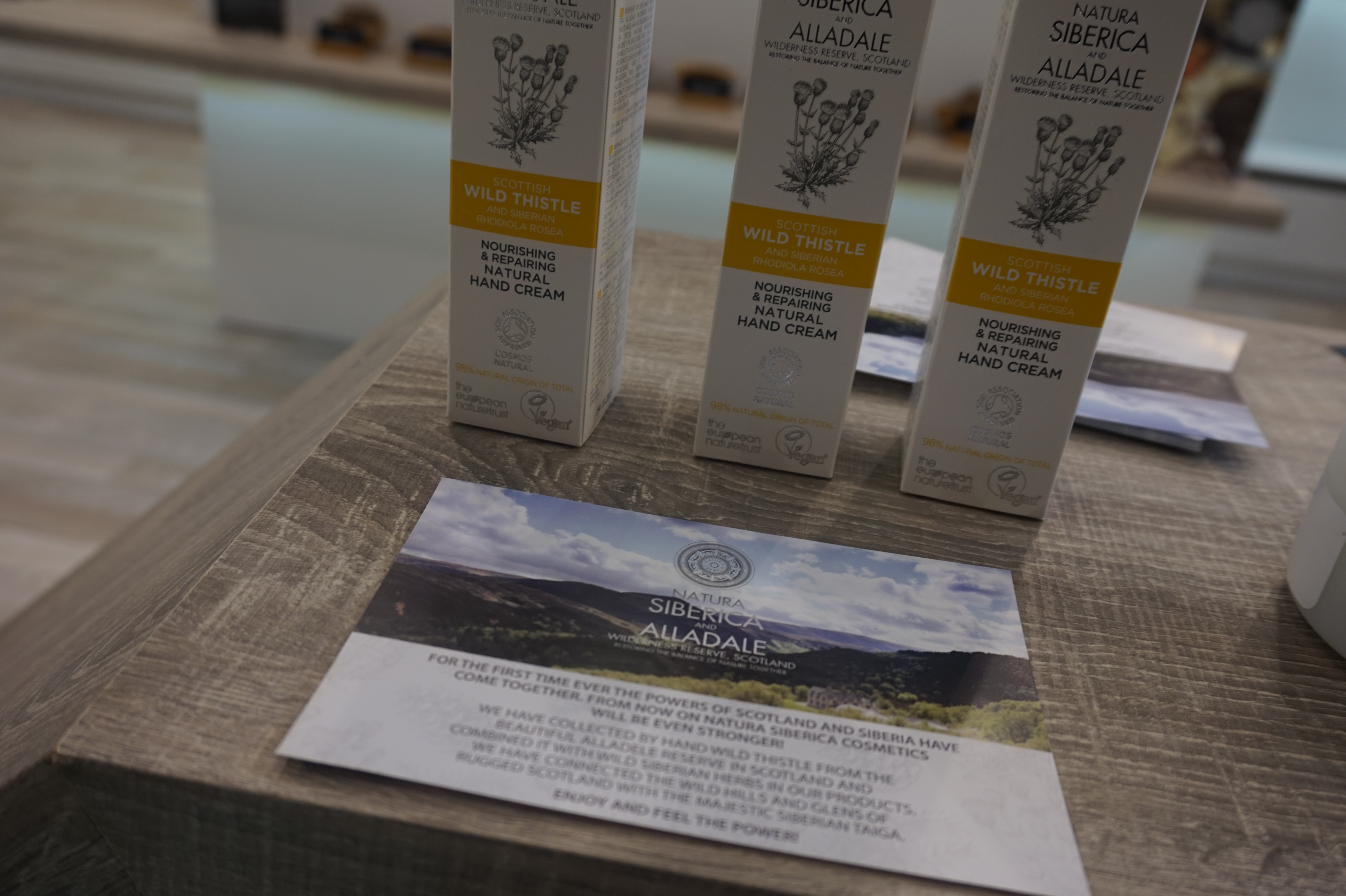 Russian C&T manufacturer Natura Siberica always has one of the biggest and most beautiful exhibition stands at Vivaness. It’s a bit of a strange company; they are present at Vivaness every year but the products are still not available in Germany. Hm. Anyway, the brand usually has several new launches to present at Vivaness; this year the novelties included bath and body care range Natura Siberica and Alladale, a cooperation between the Russian beauty brand and the Scottish wildlife preserve of Alladale. The eight products contain local Scottish Wild Thistle extract combined with various Siberian ingredients. A really interesting idea!