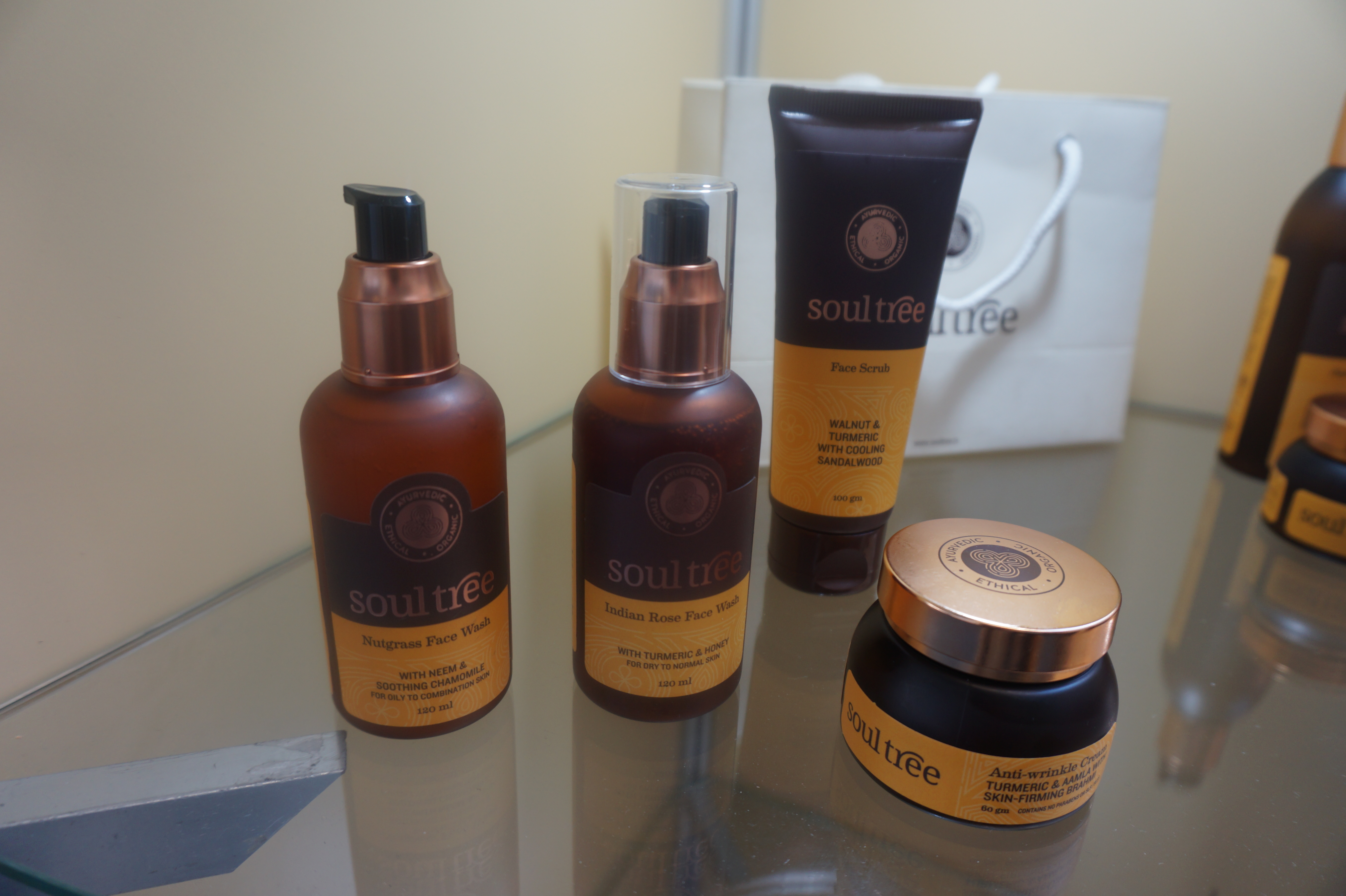 And Soultree is one of the very few certified organic brands from India. I had read about Soultree’s kajal crayons on Beautyjagd blog last year so I was eager to check out the other products of the Gurgaon-based company. Soultree’s cosmetics are formulated with ayurvedic ingredients; the face care line-up includes an anti-wrinkle cream with turmeric and amla, a nourishing cream with saffron and almond oil, a sun protection cream with aloe vera and green tea, a moisturising gel with sandalwood and tulsi extract and an eye gel with pomegranate and almond oil.