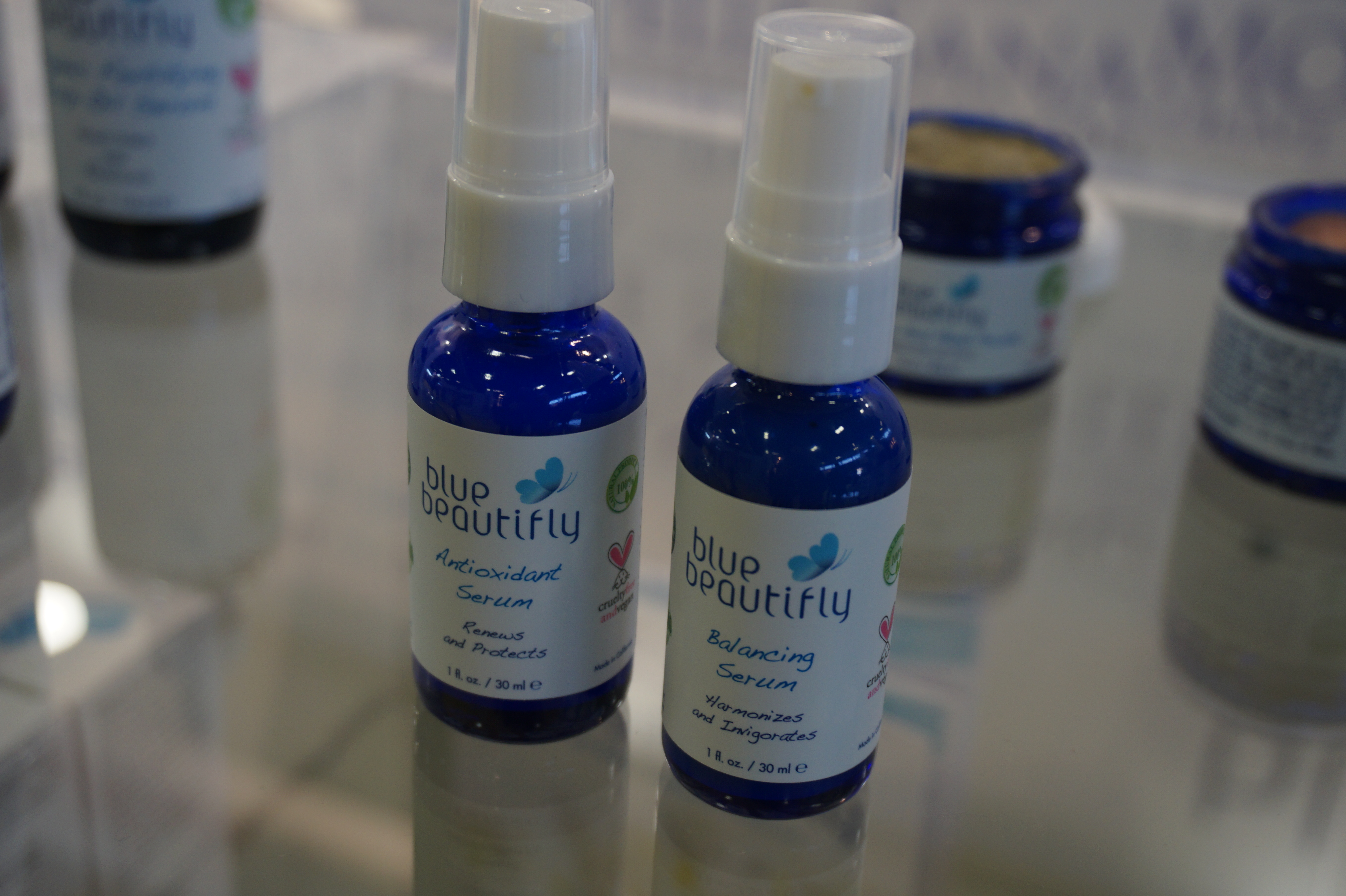 Another nice little brand in the California pavilion was Blue Beautifly. Blue Beautifly was launched in 2010 and its products are sold online and in various spas in the US. Certified by the USDA and BCorp, the brand’s portfolio includes two facial cleansers (priced at 28 USD for 59ml), three solid scrub bars which offer different levels of exfoliation, two face serums and two oil serums (48-52 USD for 30ml), a moisturising cream for normal and dry skin and pure argan oil plus three clay-based powder masks. There are also two eye serums (36 USD for 15ml), two body oils (around 50 USD for 118ml), a scalp oil and a roll-on deodorant.