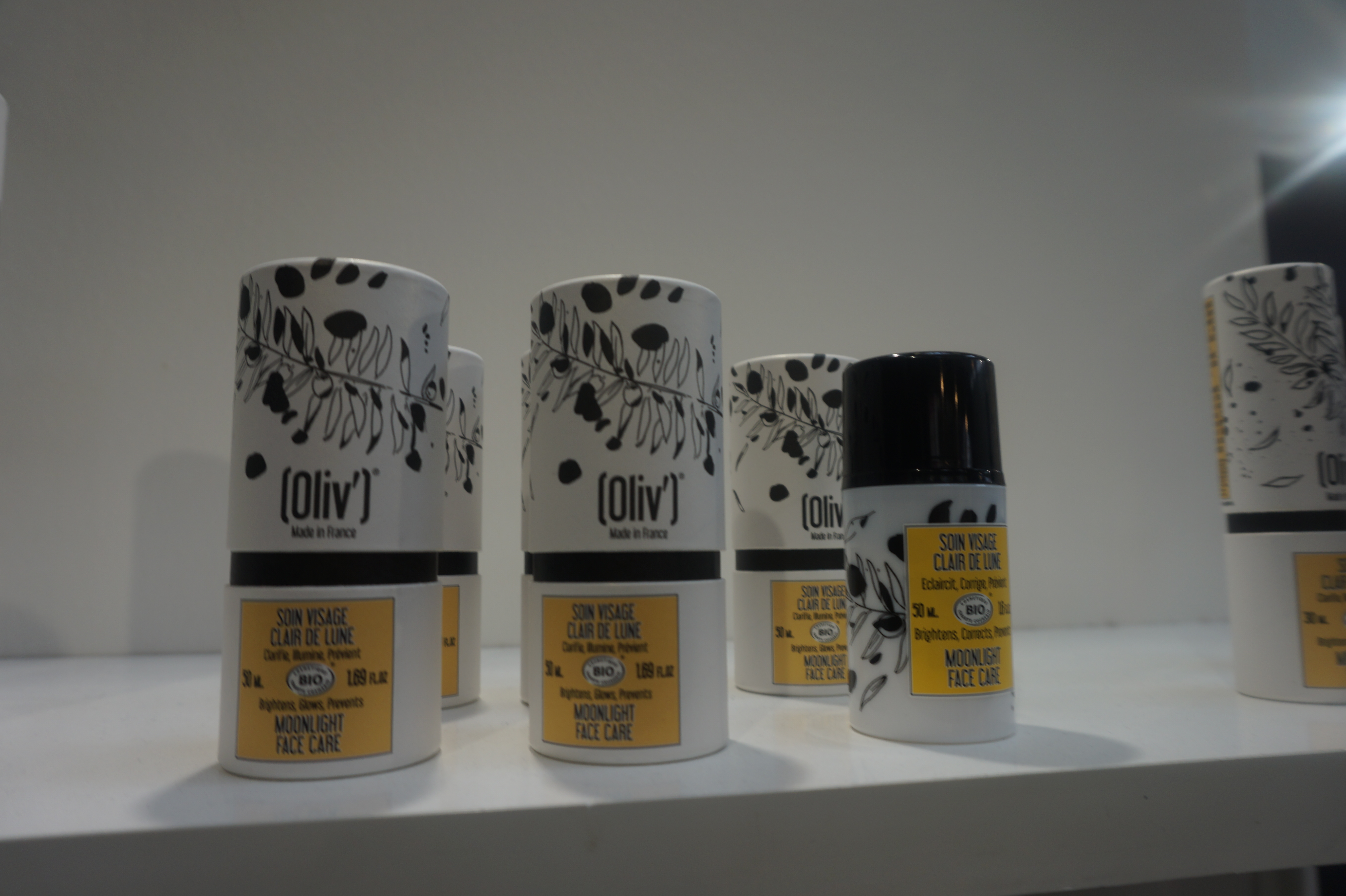 There was one especially interesting-looking range, the yellow-packaged Clair de Lune/Moonlight brightening line. This product range was actually developed for the brand’s Asian markets. Although Oliv’s products are also distributed in European countries such as the Netherlands, Belgium, UK, Switzerland, Slovakia and Denmark, the company’s most important regional business is in Asia. Oliv’ is retailed in Japan (where the products are available in Japanese organic perfumery retail chain Cosmekitchen’s outlets), Taiwan and Korea (in selected Olive Young drugstores).