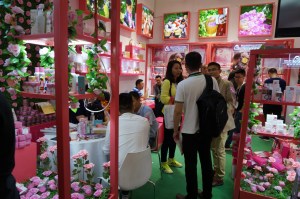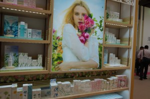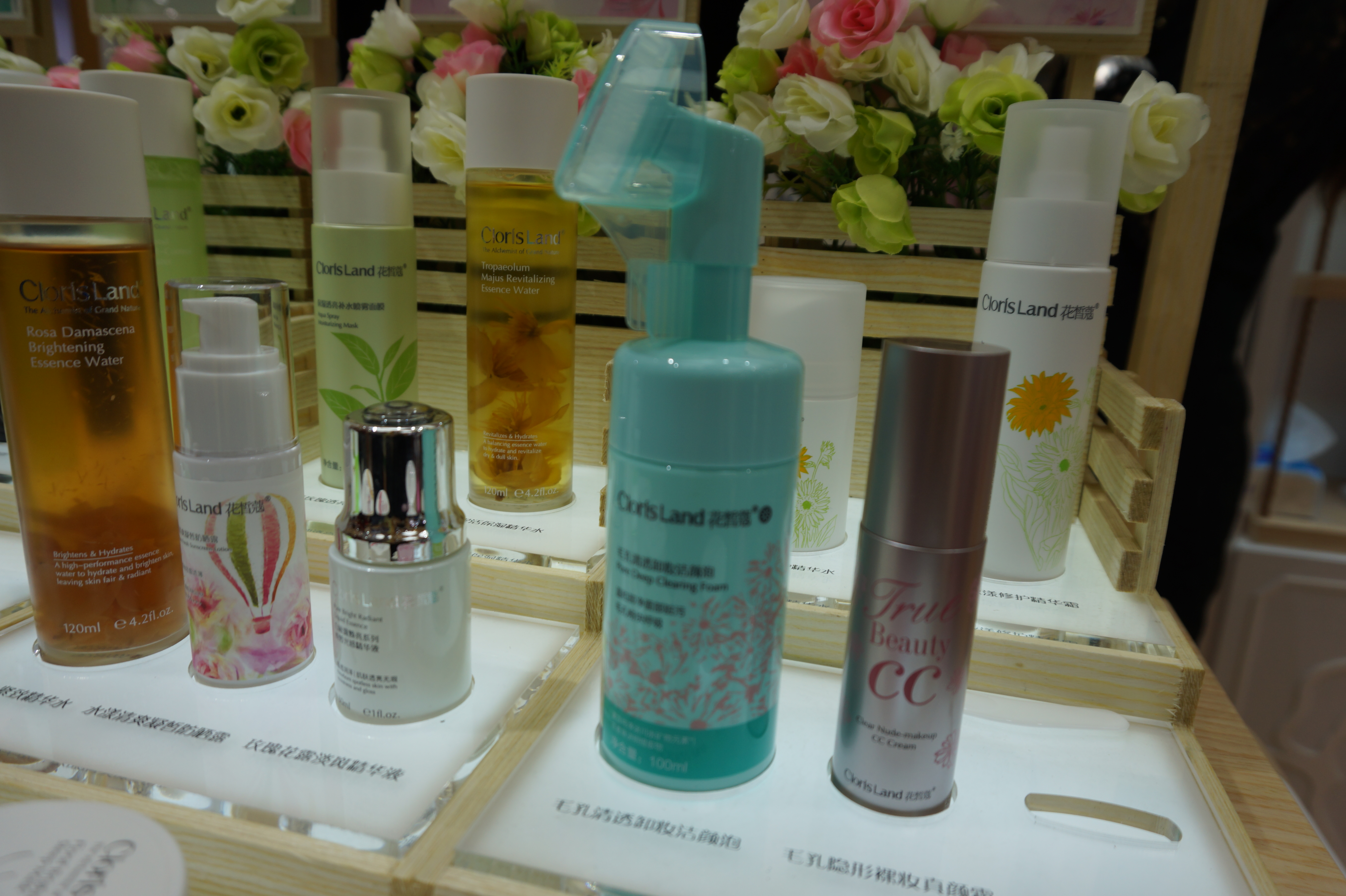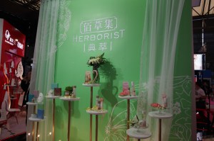 Another interesting hybrid company was Cloris Land, a natural beauty brand from Australia (see picture above). Cloris Land had a beautiful exhibition stand – I must say that I have never seen such elaborate trade show booth designs as at China Beauty Expo. Especially the Chinese hanbang/herbal beauty brands; they were beautiful to look at. Anyway, Cloris Land has an Australian product range (organic hydrosols and face care) and a Chinese product portfolio which includes six ranges with Asian products such as cleansing oils, essences, serums, lotions etc.