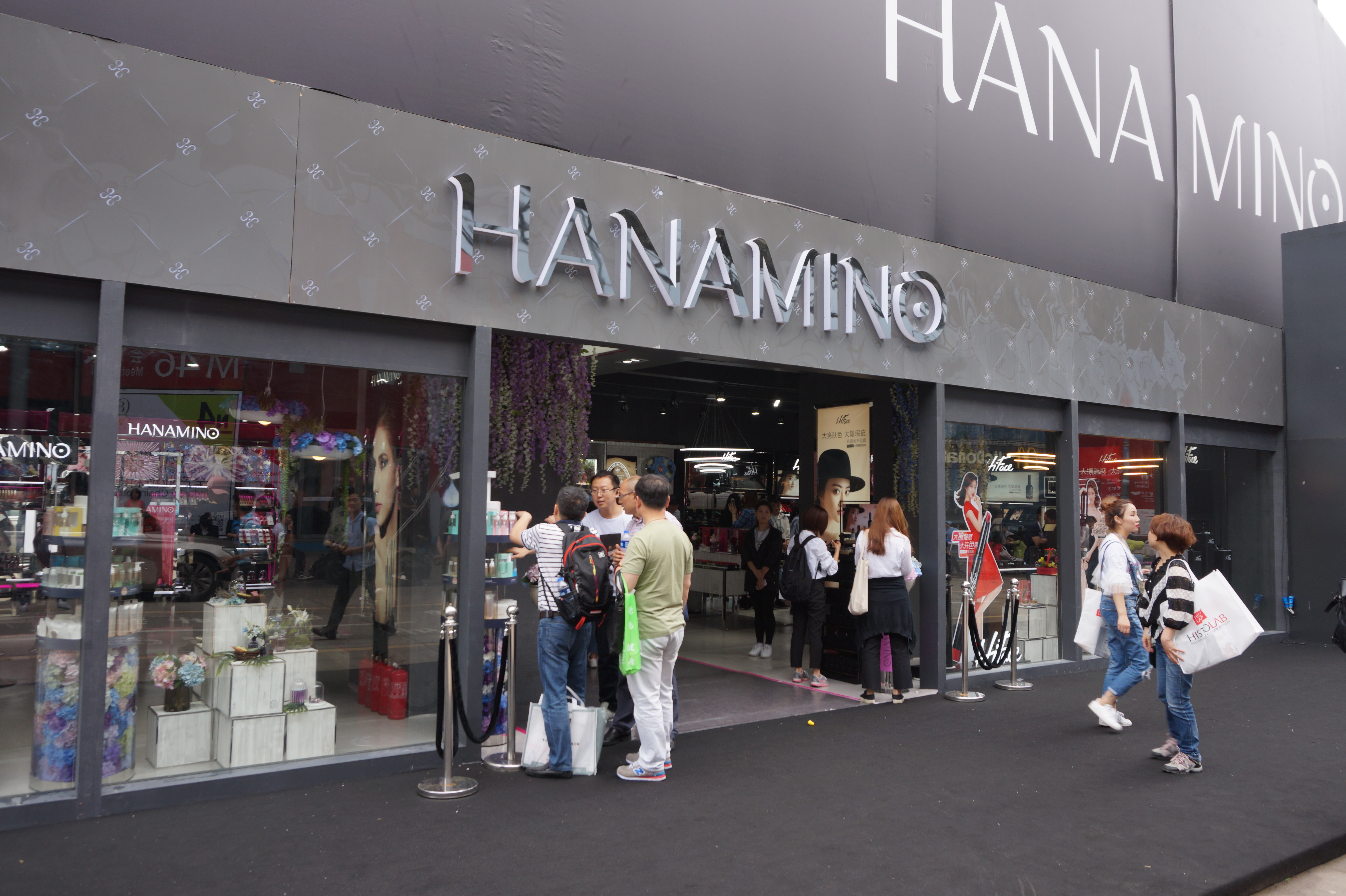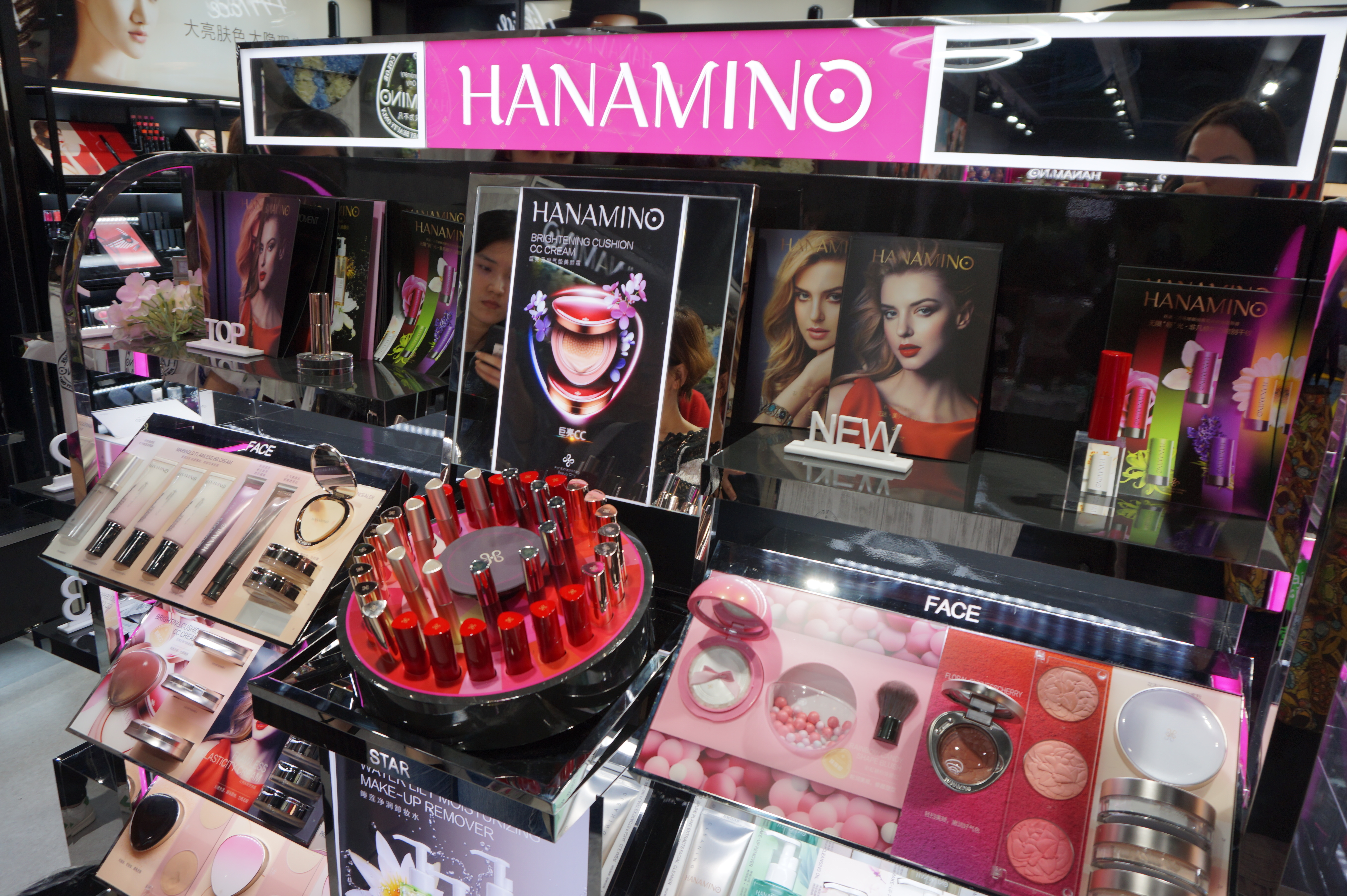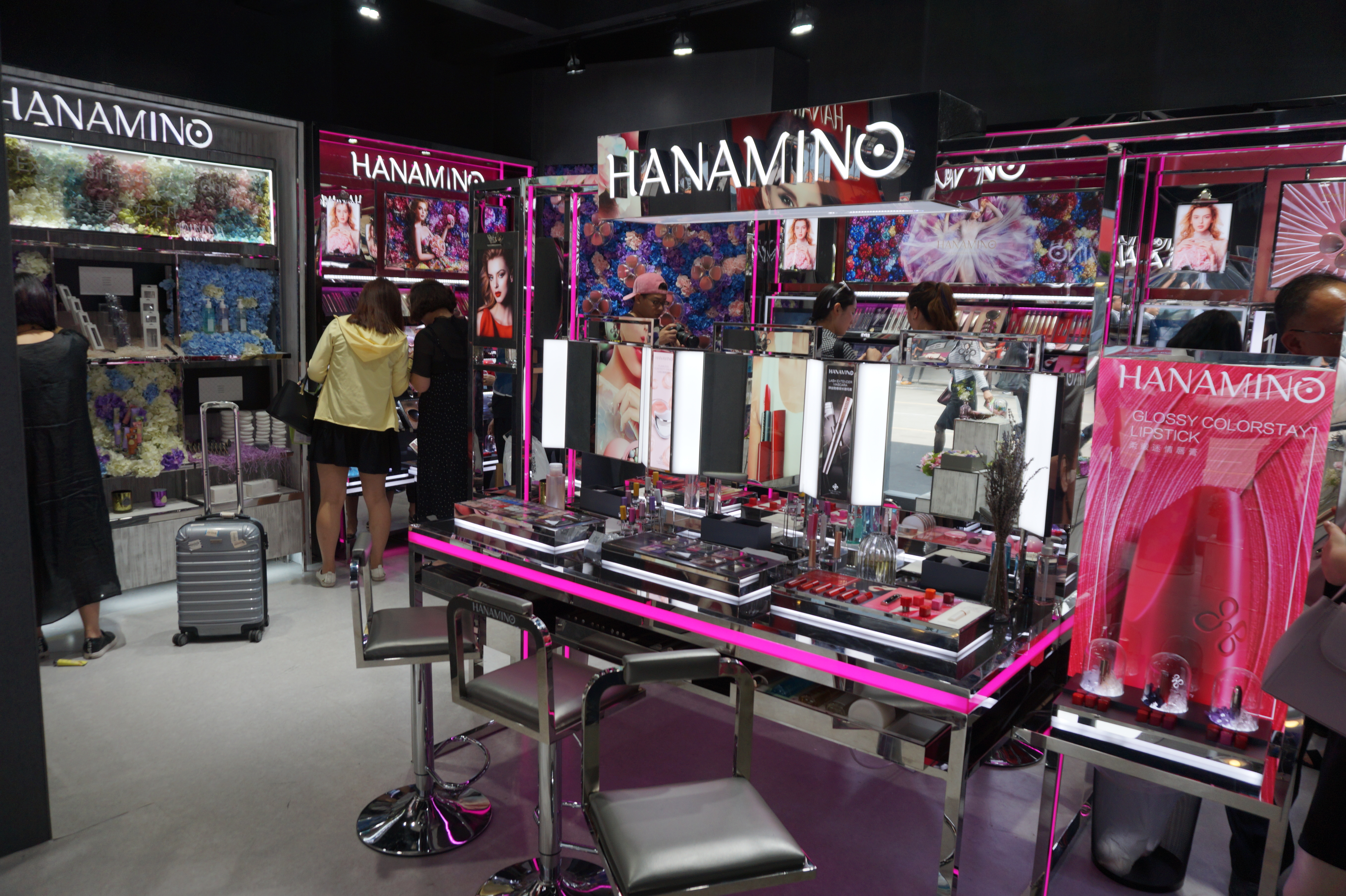 Hanamino is a brand-new Chinese premium colour cosmetics brand which will be launched next month. Parent company Chicmax had one of the big exhibition tents in the middle of the trade show grounds – beautifully decorated, of course – to showcase Hanamino and its sister brand, professional makeup range HiFace. I had a nice chat with Hanamino’s product manager; she told me that the brand offers 167 sku; mostly colour cosmetics but also some face care products. Check out the eyeshadow Rubik’s Cube in the picture above! It was made as a promotional item for the trade show and is not for sale, unfortunately – it was such an unusual (and well-designed) product! 36 powder eyeshadows are arranged in rows of three; you can twist the cube like you would a Rubik’s Cube and bring different eyeshadow rows to the front.