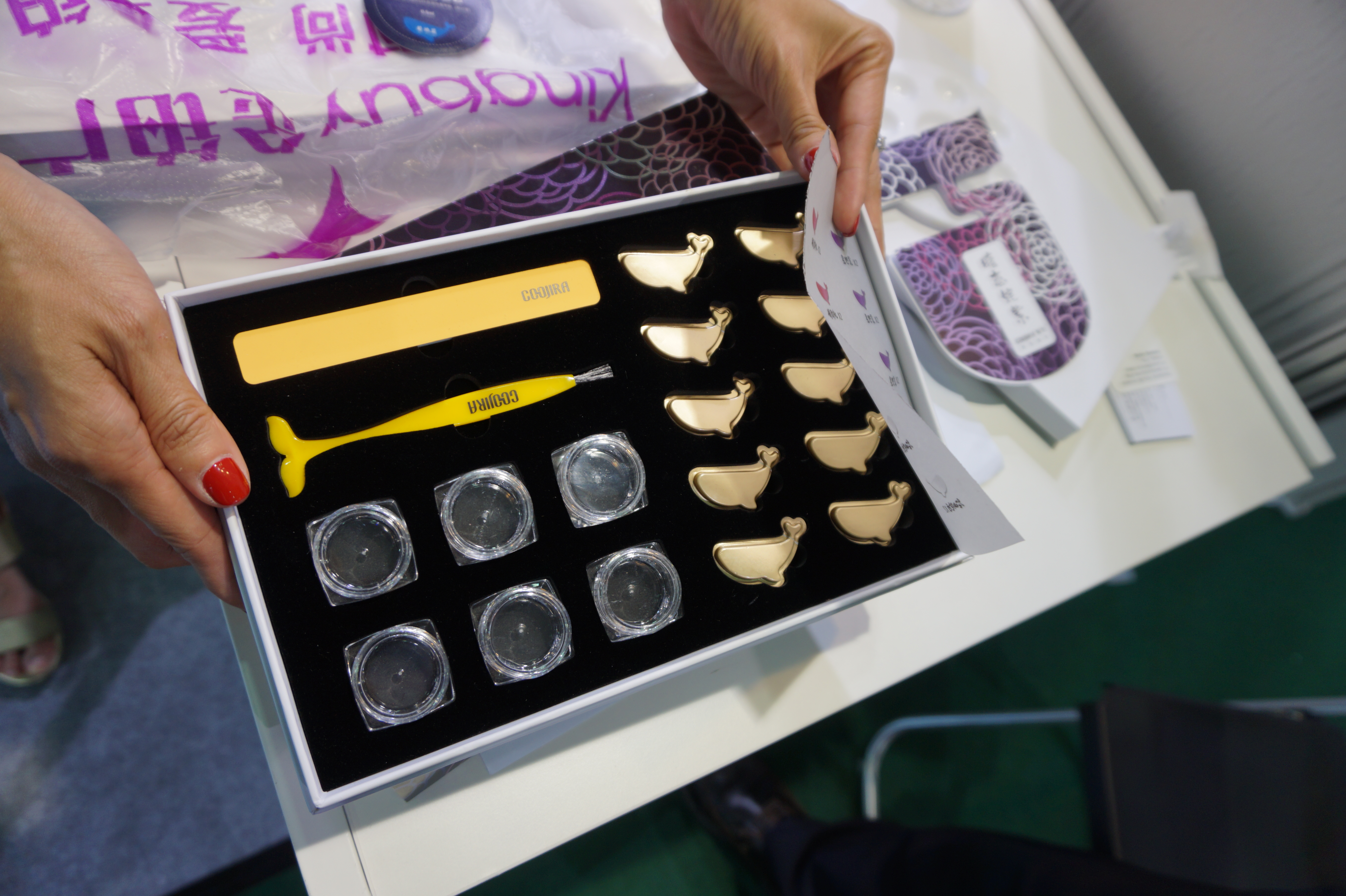 On my very last day I met the founder of Coojiro, a Chinese company which specialises in mix-your-own gel polish kits. The sets (see pictures above) include 6 small plastic jars, 24 gel polish colours in little squeeze sachets plus one gold and and silver shade, a nail file and a clever little manicure tool – one end features a nail polish brush, the other can be used to push back the cuticles prior to applying the polish. With the kit you can mix any polish shade in the white, pink, purple and red spectrum; there are also beautifully packaged kits with blue and green shades and individual refill palettes.