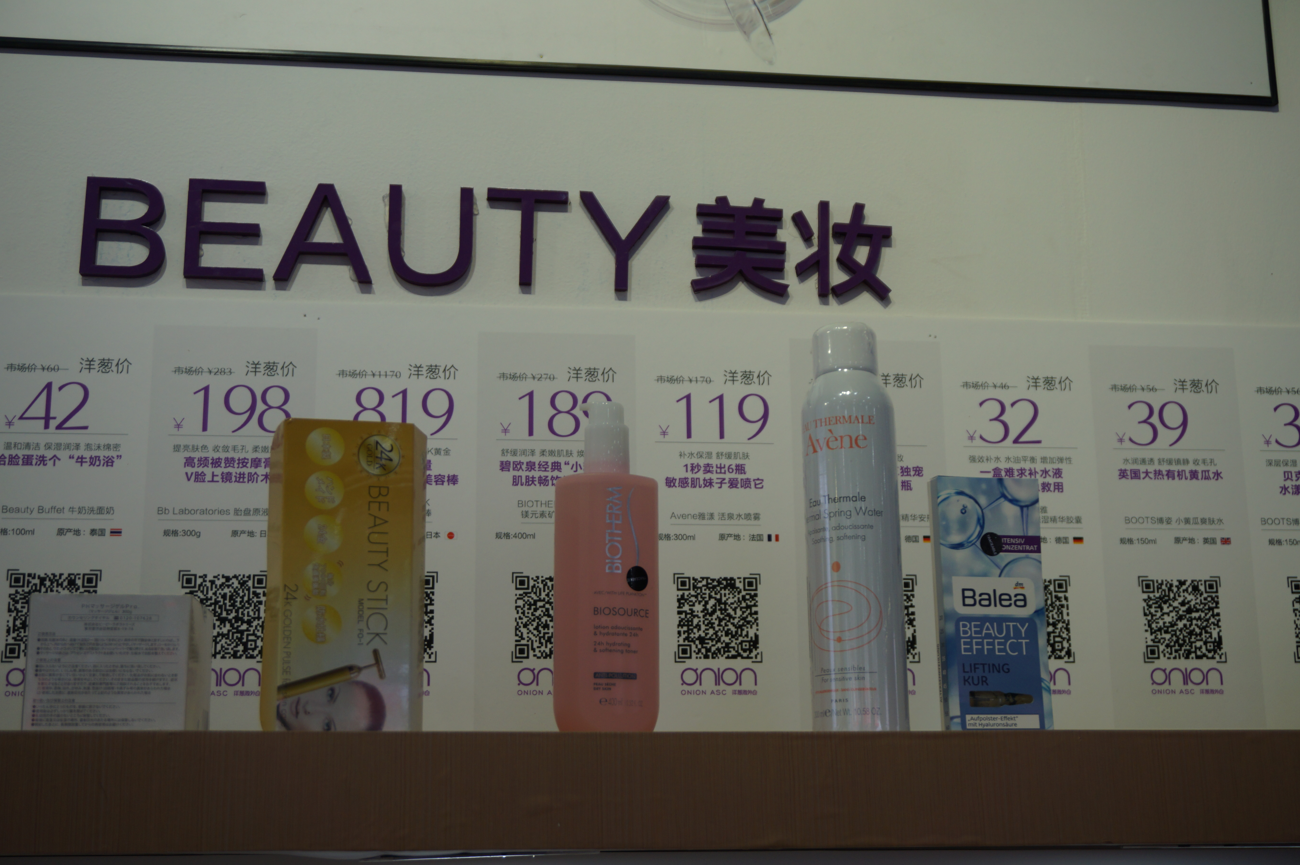 The Ms Onion brochure advertises 1886 overseas brands in all sorts of consumer goods categories – personal care, cosmetics, baby care, milk powder, foods, accessories, supplements, household products, small electronics, confectionery, foods, pet care and so on and so forth – which are available for 30-40% less than the Chinese RRP. In the Ms Onion tent there were shelves full of Western, Japanese and Korean beauty products with a bar code strategically placed behind each product and the Ms Onion price prominently displayed (see pictures above).