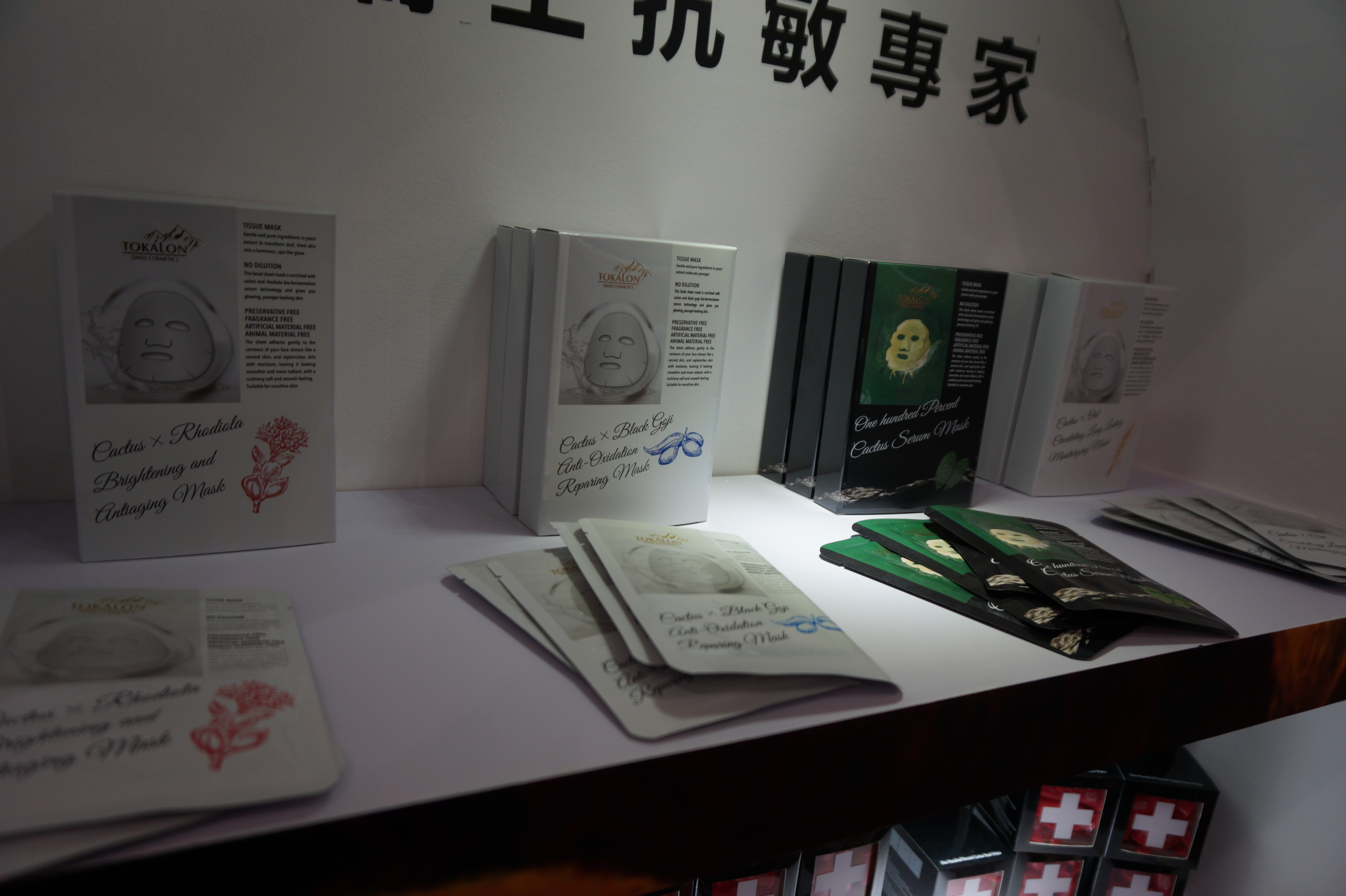 Tokalon was a first-time exhibitor at China Beauty Expo and presented its latest product launches: Cactus Yeast Water (see picture above) which is packaged in little plastic ampoules and contains fermented cactus extract plus four fermented cactus extract-based sheet masks. I tried out one of the masks that very night in my hotel room – it was nice: plenty of serum-y liquid, very hydrating and it had a barely perceptible herbal smell which I liked.