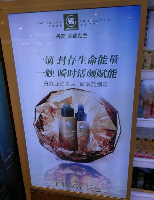 You still get gibberish, of course, but occasionally there are bits and pieces that make sense. So, this is courtesy of Google Translate’s Live Translation App: Urtekram China’s site mentions 103 Urtekram counters or POS in Eastern China and something about hair care shelves (salons, perhaps?) and supermarkets. During my Google research I came across a number of pictures of Urtekram brand counters which looked very elegant (see screenshot below), so presumably the brand is sold in more upmarket retail stores as well. Under “Latest News” was a link to Auchan in Suzhou so I’m guessing that a few of the big Western supermarket retailers in China also carry some Urtekram ranges.