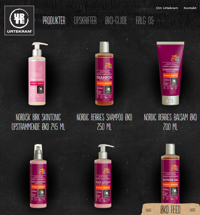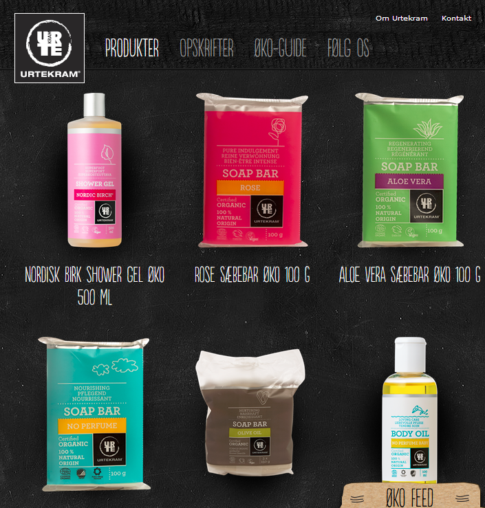 For purposes of comparison here are two screenshots of Urtekram’s Western product ranges:
