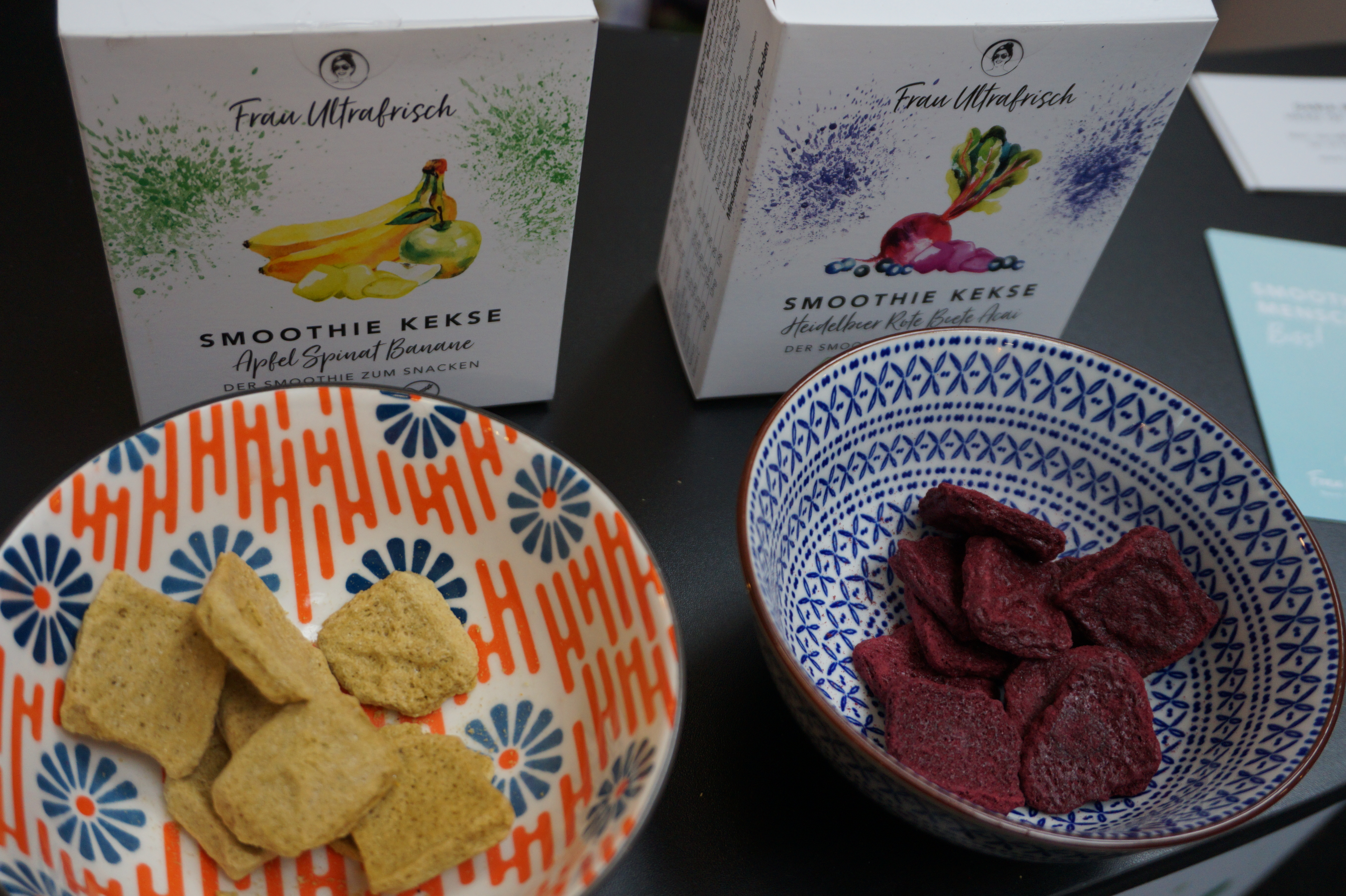 And Frau Ultrafrisch (see pic below) has a similar concept: the Hamburg/Berlin-based company was launched in July 2017 and they specialise in healthy convenience foods. Unlike Lunch Vegaz, Frau Ultrafrisch’s dishes are freeze-dried. Everything is manufactured in Hamburg and the product range includes so-called Smoothie Cookies (freeze-dried fruit puree slices, see pic below) which are available in four flavours – Strawberry-Peach-Carrot, Apple-Banana-Spinach, Blueberry-Beetroot-Acai and Mango-Coconut.