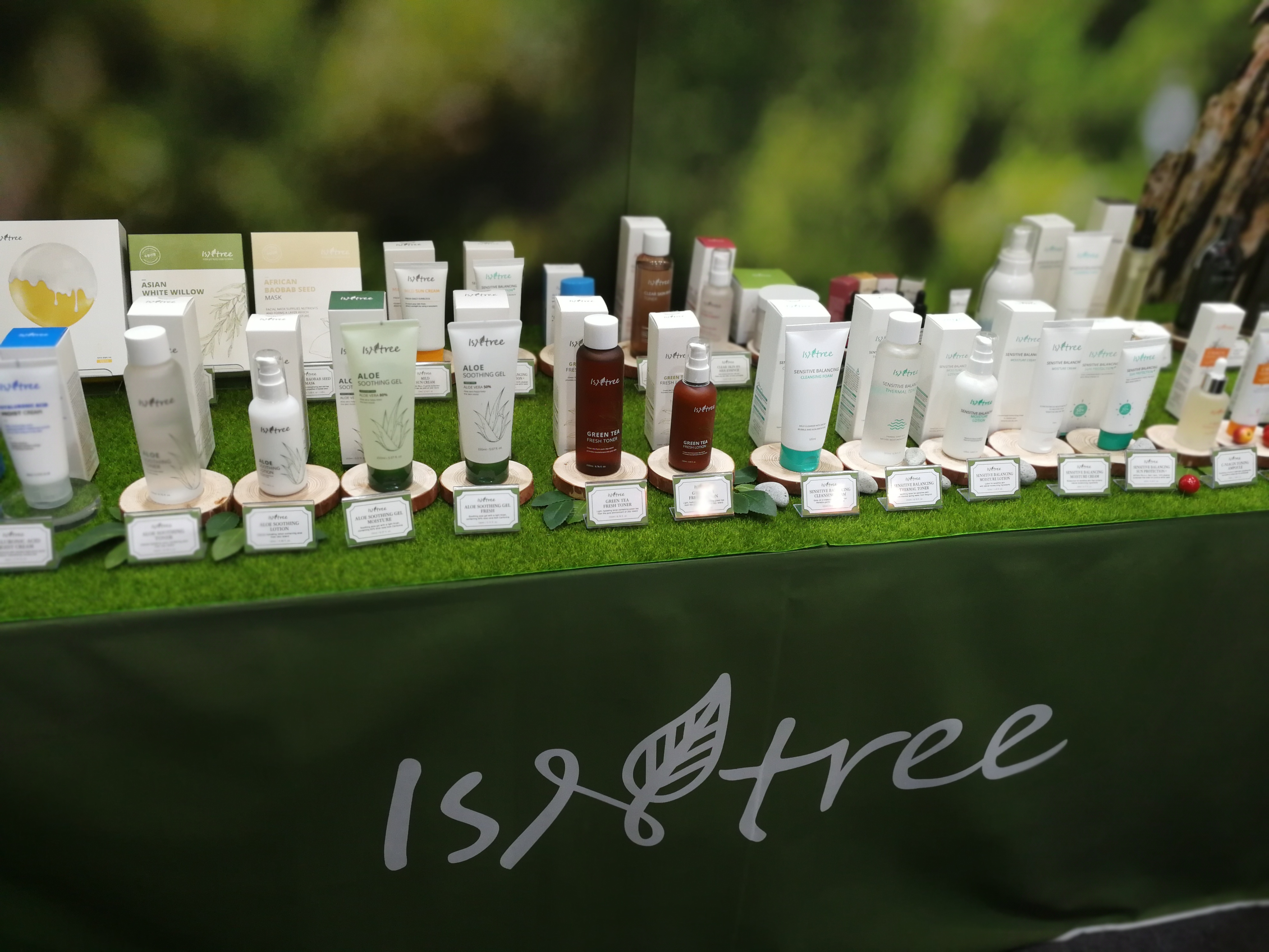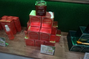 Their bestseller is the hyaluronic acid lotion you can see in the picture (second bottle from the left) and the ingredients are indeed lovely; with a great texture. I can see why the product is Isntree’s star product. If I hadn’t already had bought so many Korean beauty products by that time (the trade show came at the end of an intense retail research week in Seoul!) I might have treated myself to a small bottle of the toner. Maybe next time!