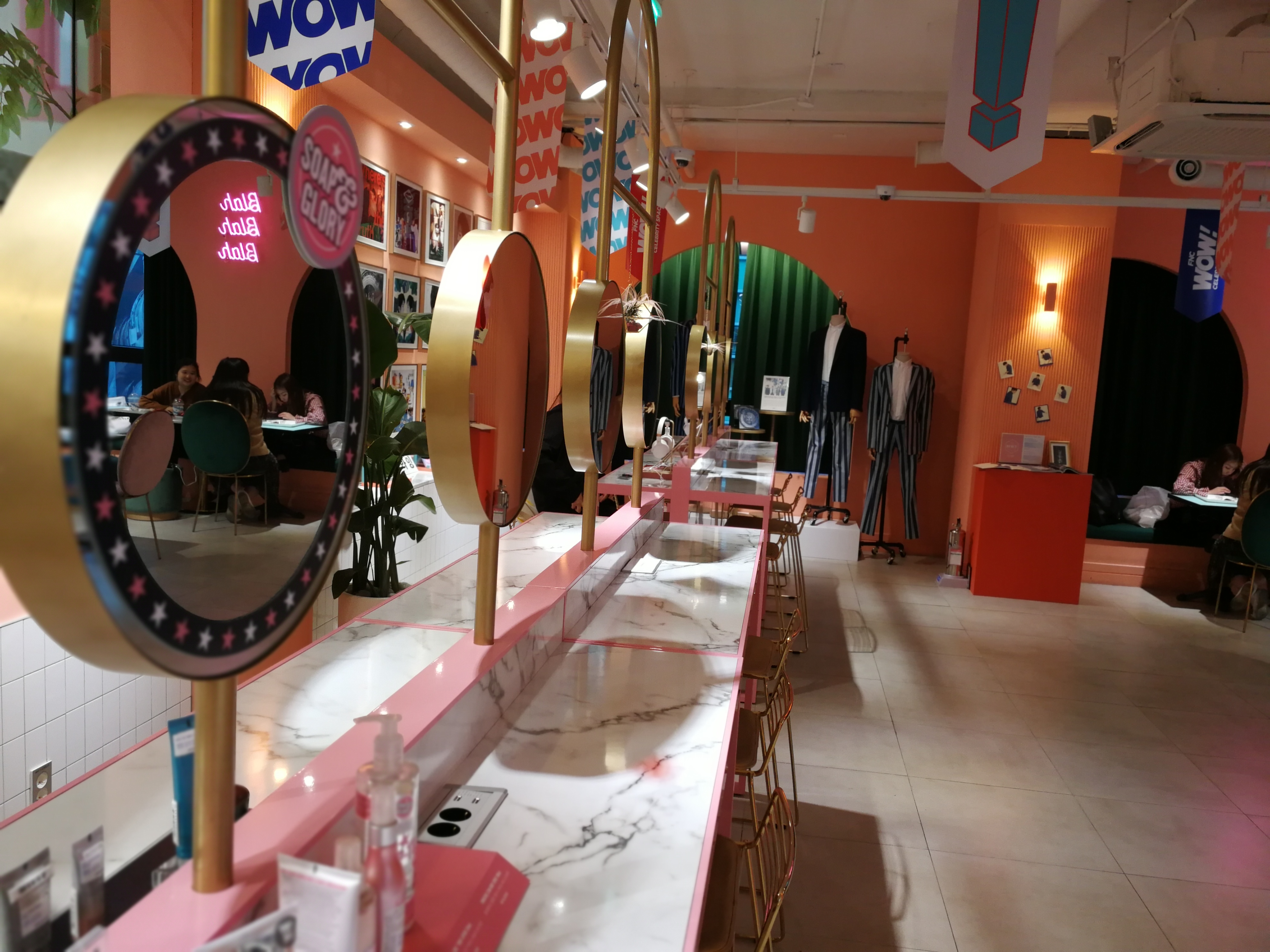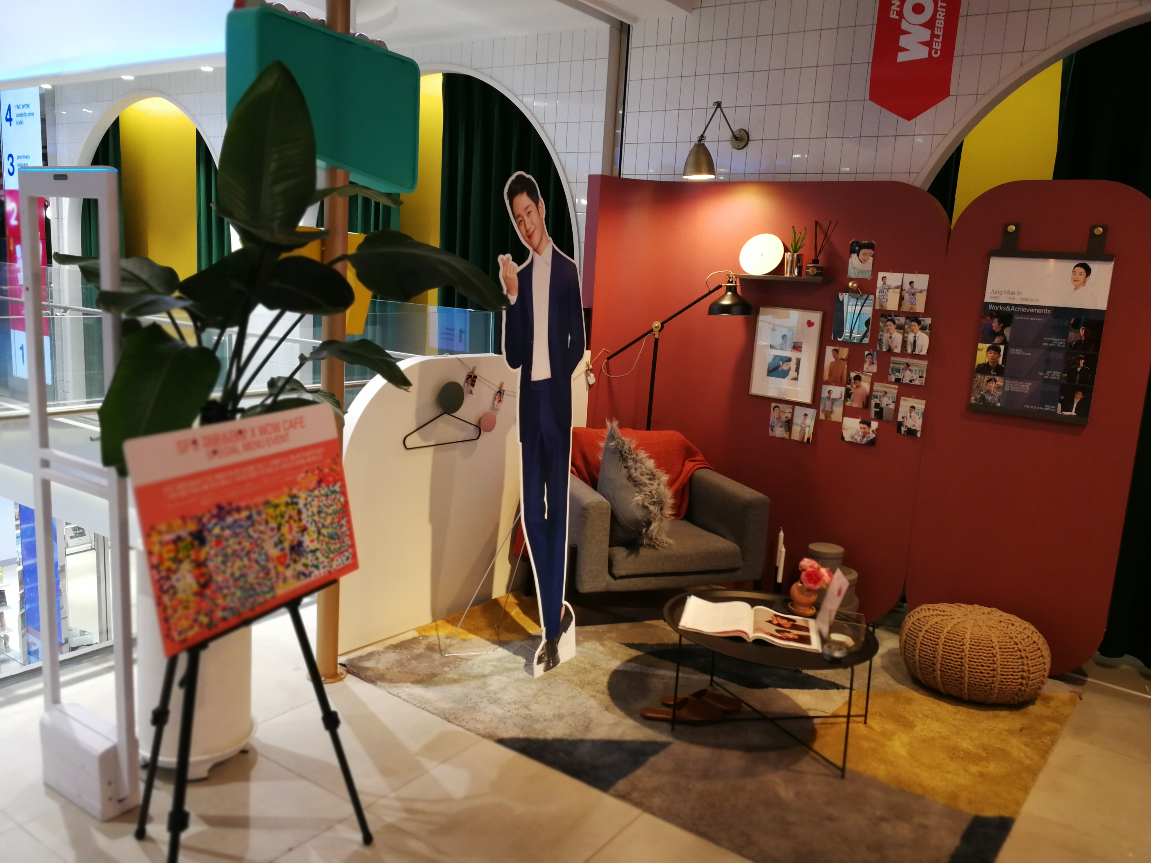 The FNC Celebrity Space café is operated by FNC, one of the biggest Korean entertainment companies – their stable of artists includes some high-profile K-pop brands, singers and models. There is a seating area and a café counter plus a small celebrity exhibition area with selfie corners (check out the cardboard cutout in the top picture!)