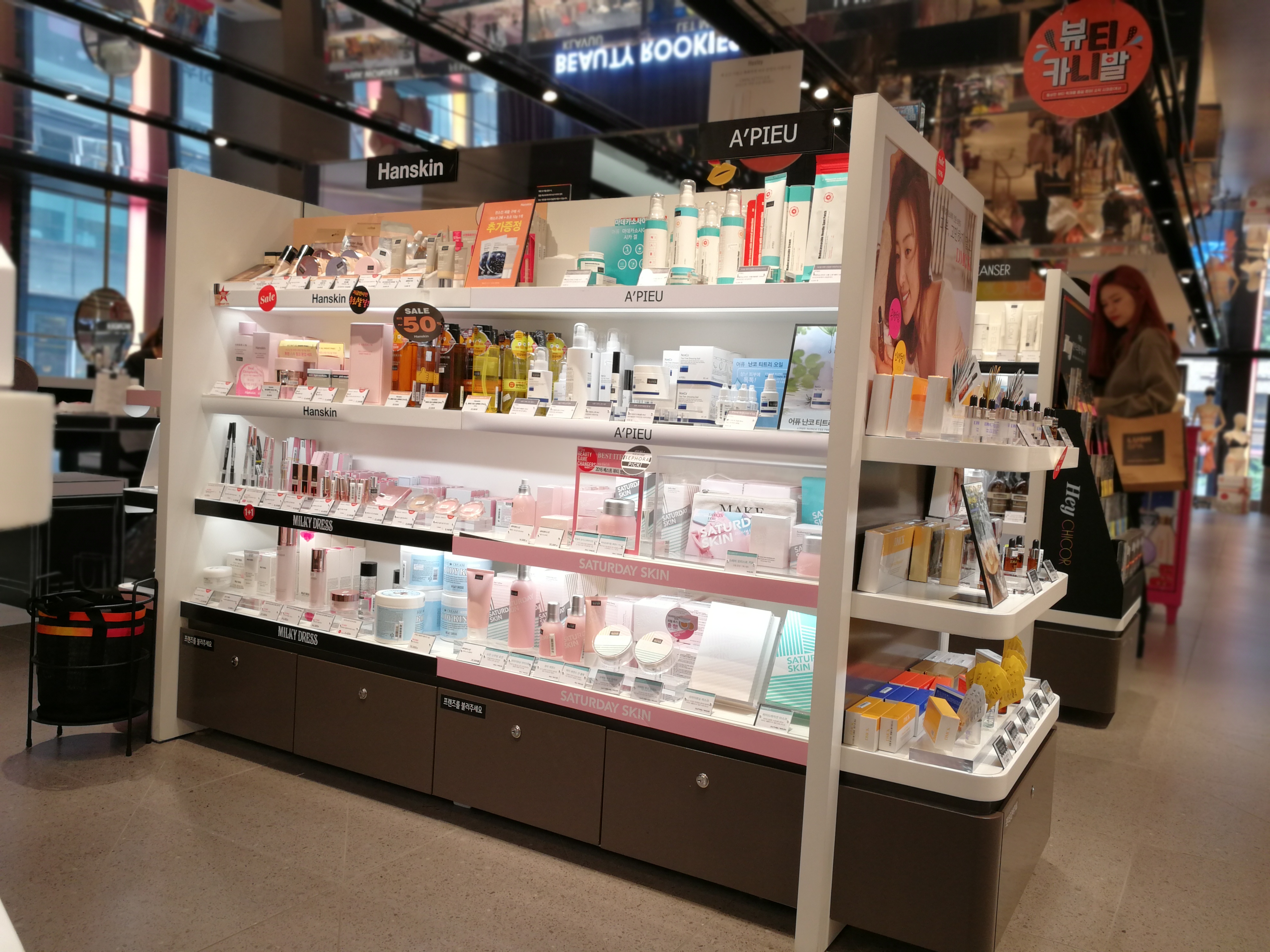 Then you have so-called “multi brand“ stores: drugstore chain Olive Young (CJ Group), for example, the Watsons chain (AS Watson Korea, now GS Retail) or LOHBS (Lotte Group). These retailers sell a wide range of different beauty brands, with a strong focus on mass market personal care.