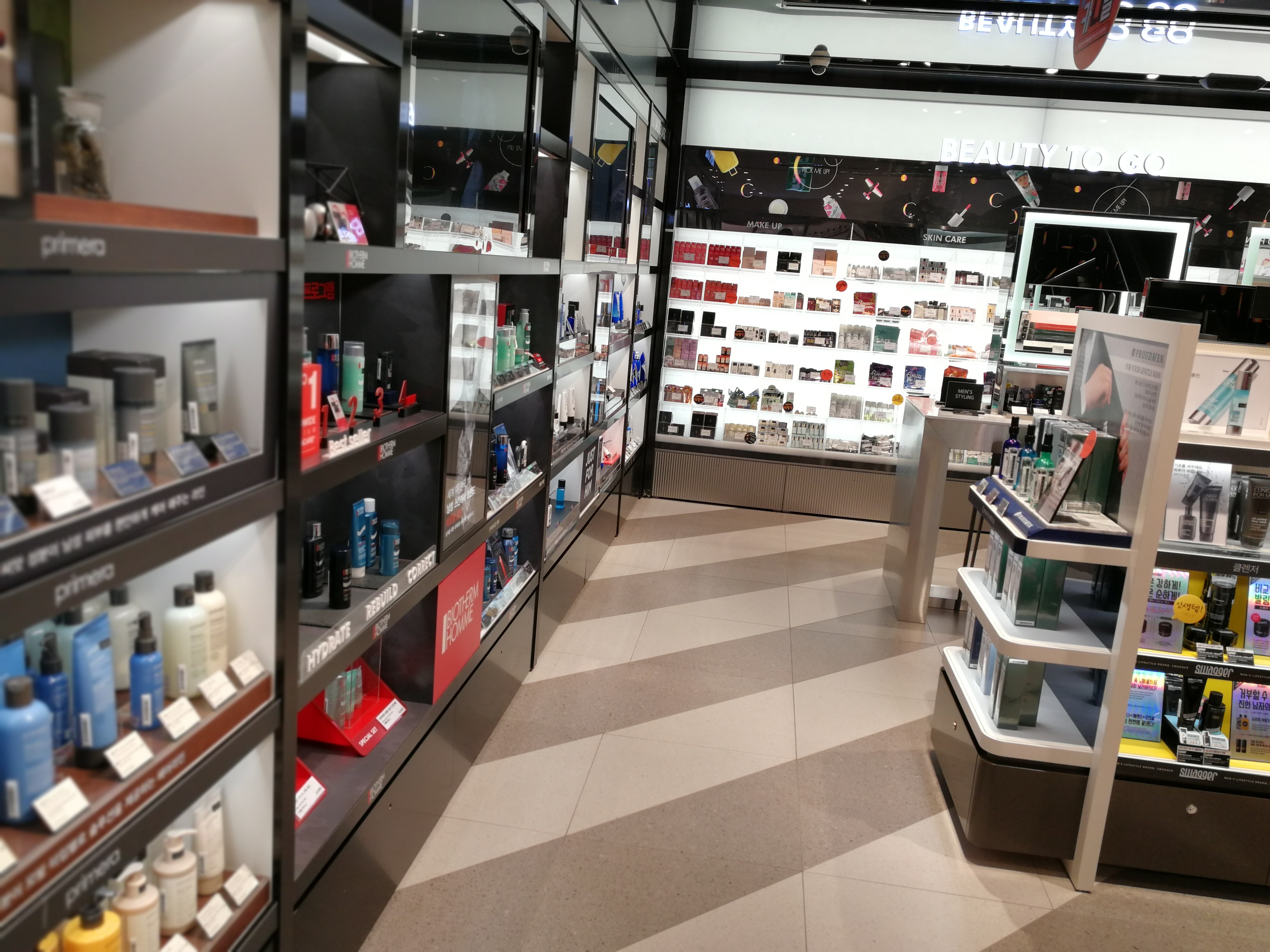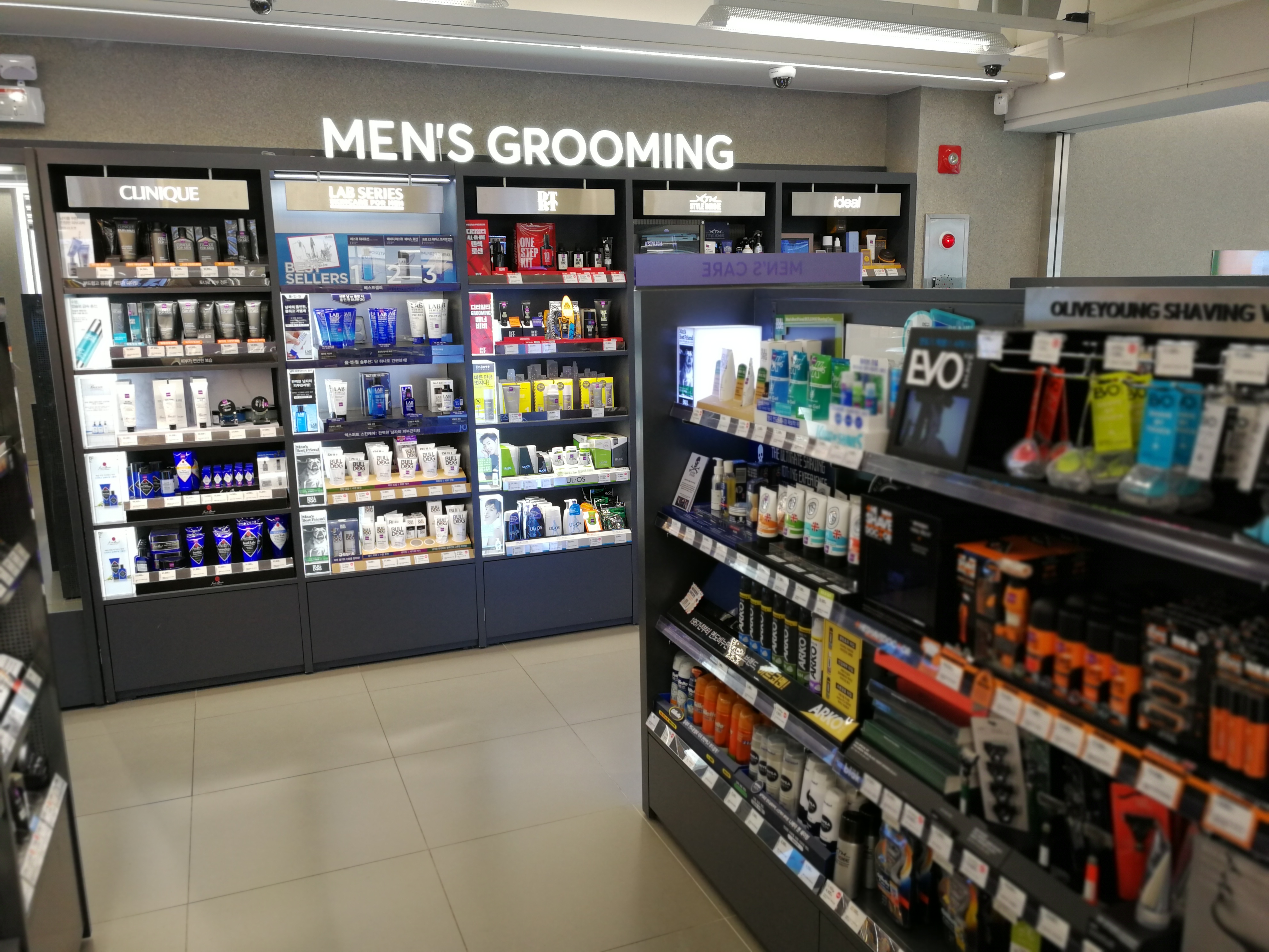 Now follow me to the basement: here we find home fragrances, travel sizes and other lifestyle products (some stationery, beauty gadgets, confectionery) and the men’s department – men’s fragrances, skin care, shaving, beauty tools and accessories. The product line-up includes the men’s care ranges from Western brands such as Origins, Lancôme, Biotherm and Clinique but also men’s products from Korean female beauty brands like Primera, and dedicated Korean men’s care brands like Swagger.