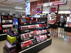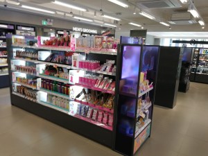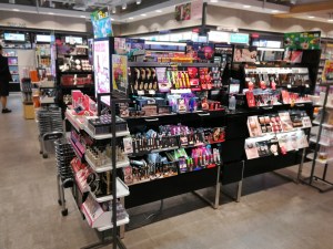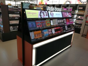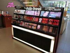 There is even an eyelash bar which has fake eyelashes on small sticks that you can hold up to your eyes to see what this particular eyelash style would look like on your eyes. Brilliant idea! On the right hand side of the entrance is the Indie Brand shelf with domestic newcomer makeup brands– really interesting, I only recognised around half of the labels.