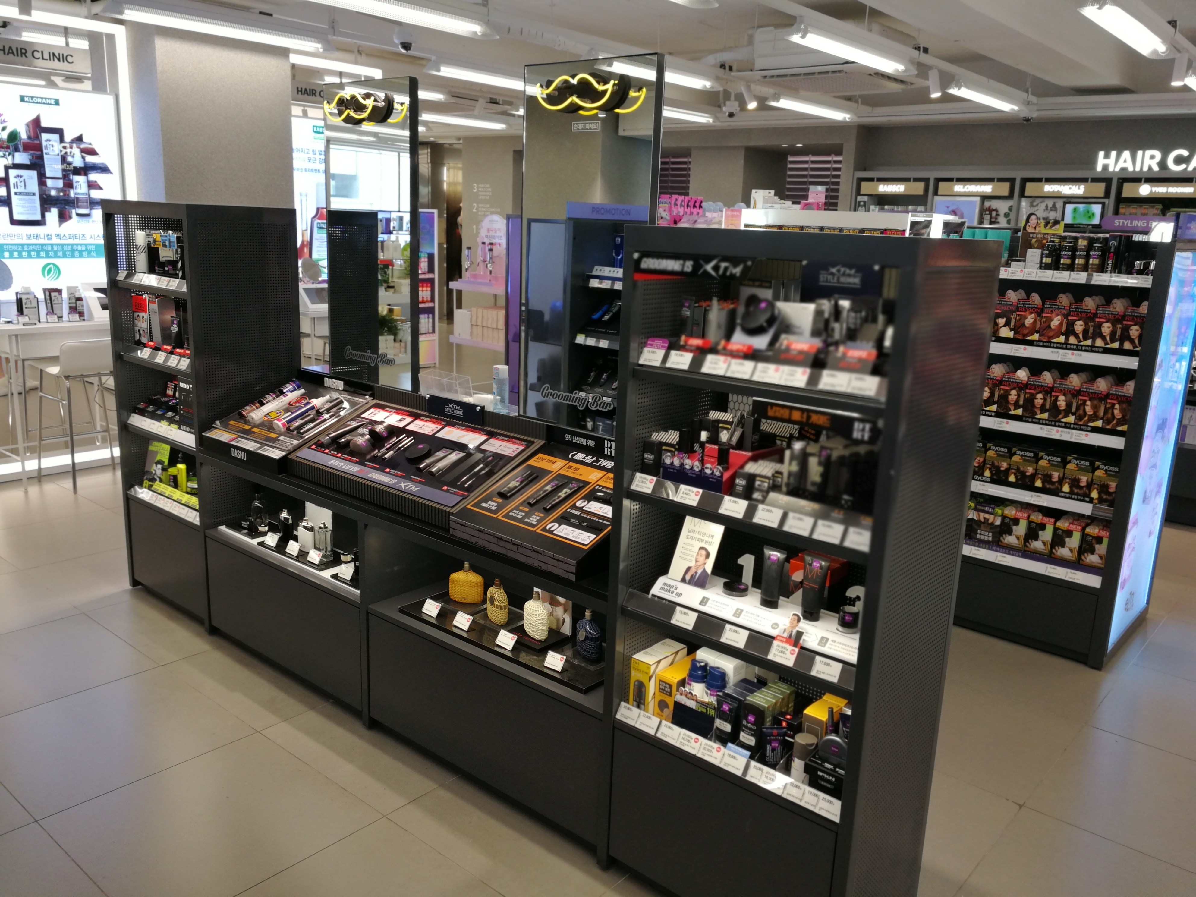 Next to the Styling Bar is the men’s grooming bar with face care, makeup and styling products from various men’s beauty brands.