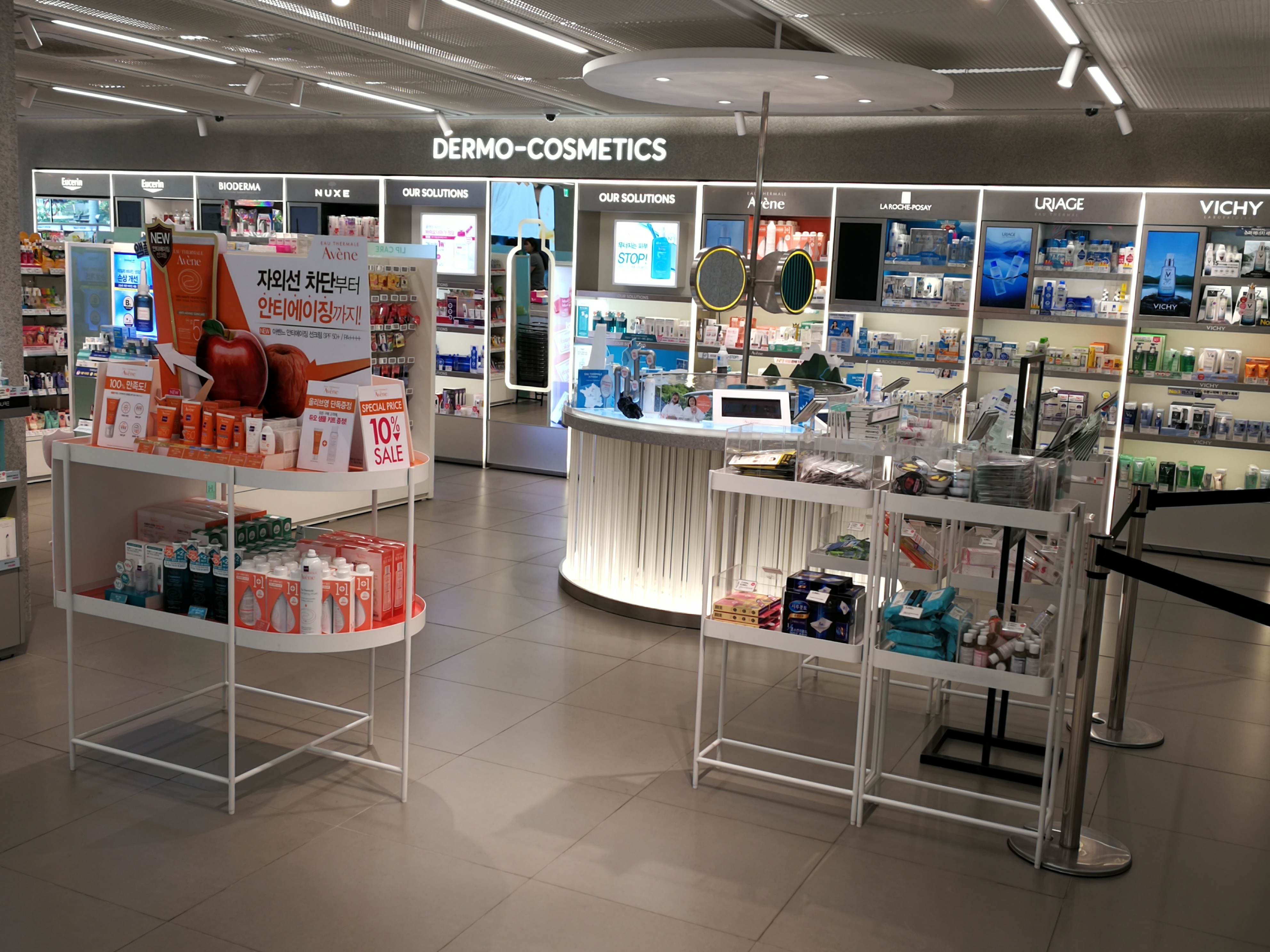 The French thermal water brands brands (always a bestseller in Korean beauty retail) occupy at least a quarter of the floor space: Avène, Vichy, Uriage, Bioderma and La Roche-Posay are represented with their entire Asian product portfolio plus Nuxe (also from France) and Eucerin (Germany).