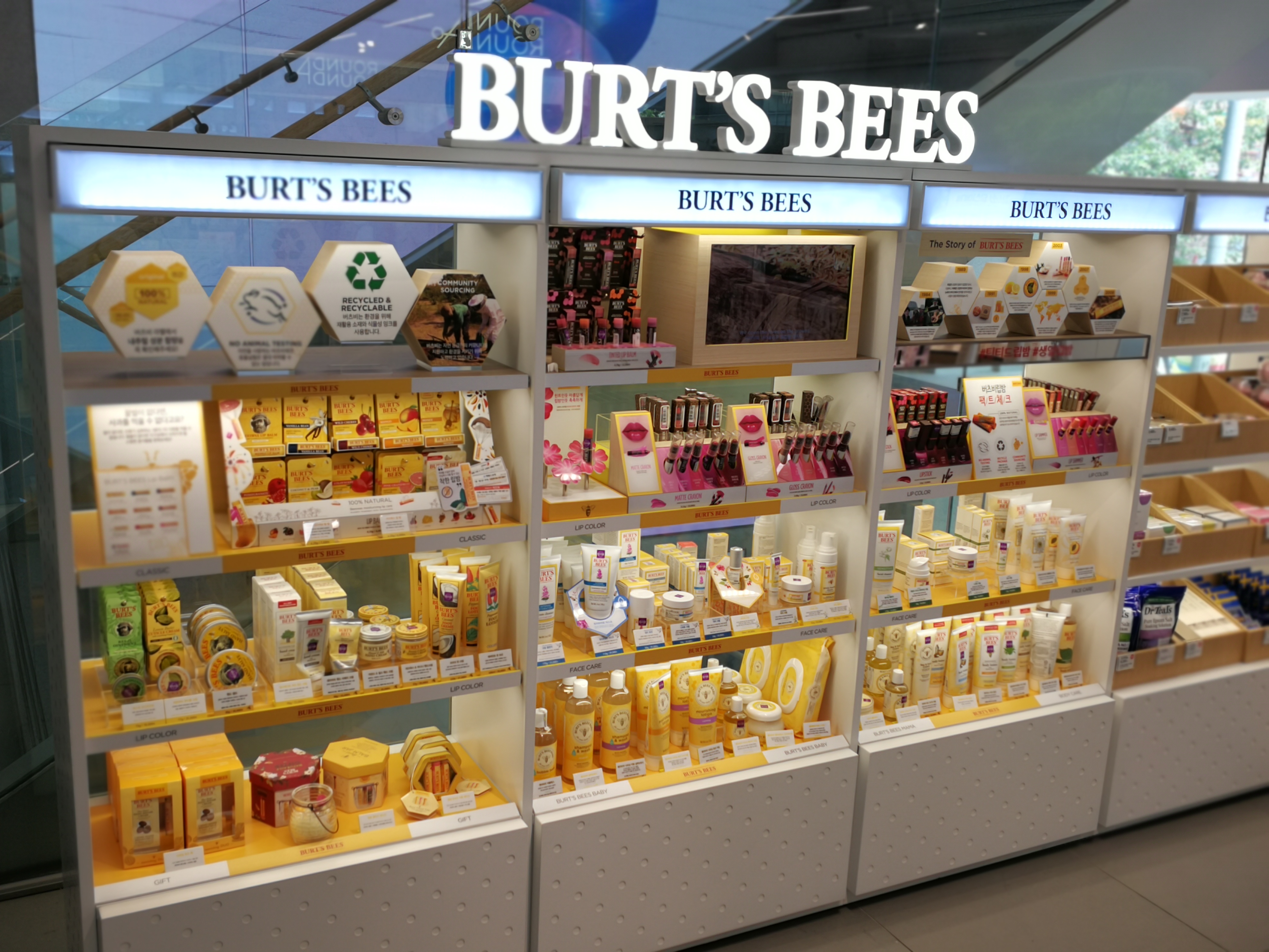 This floor also had the biggest Burts Bees product display I’ve ever seen: the entire range of skin care, hair care and body care plus all of the extra Asia-only product ranges and, in a separate brand display, a counter with the brand’s makeup range. Check out all of those gorgeous lipsticks, tinted lip balms, and conditioning lipsticks!