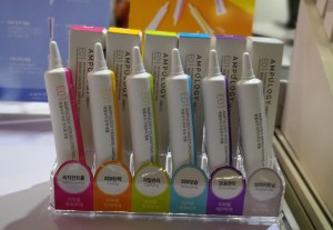 Ampulogy is an interesting Korean skin care brand which was launched in June 2017. As the brand name suggests, Ampulogy offers a range of clear liquidy gel serums to address various skin concerns – whitening, firming, sebum control, hydrating and so on – which can be added to your own skin care products to make them more effective. Skin care customisation was a major trend at Cosmoprof Asia this year; there were a number of Asian brands that offered this kind of ampoule/single ingredient serum concept.