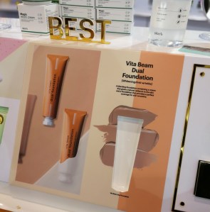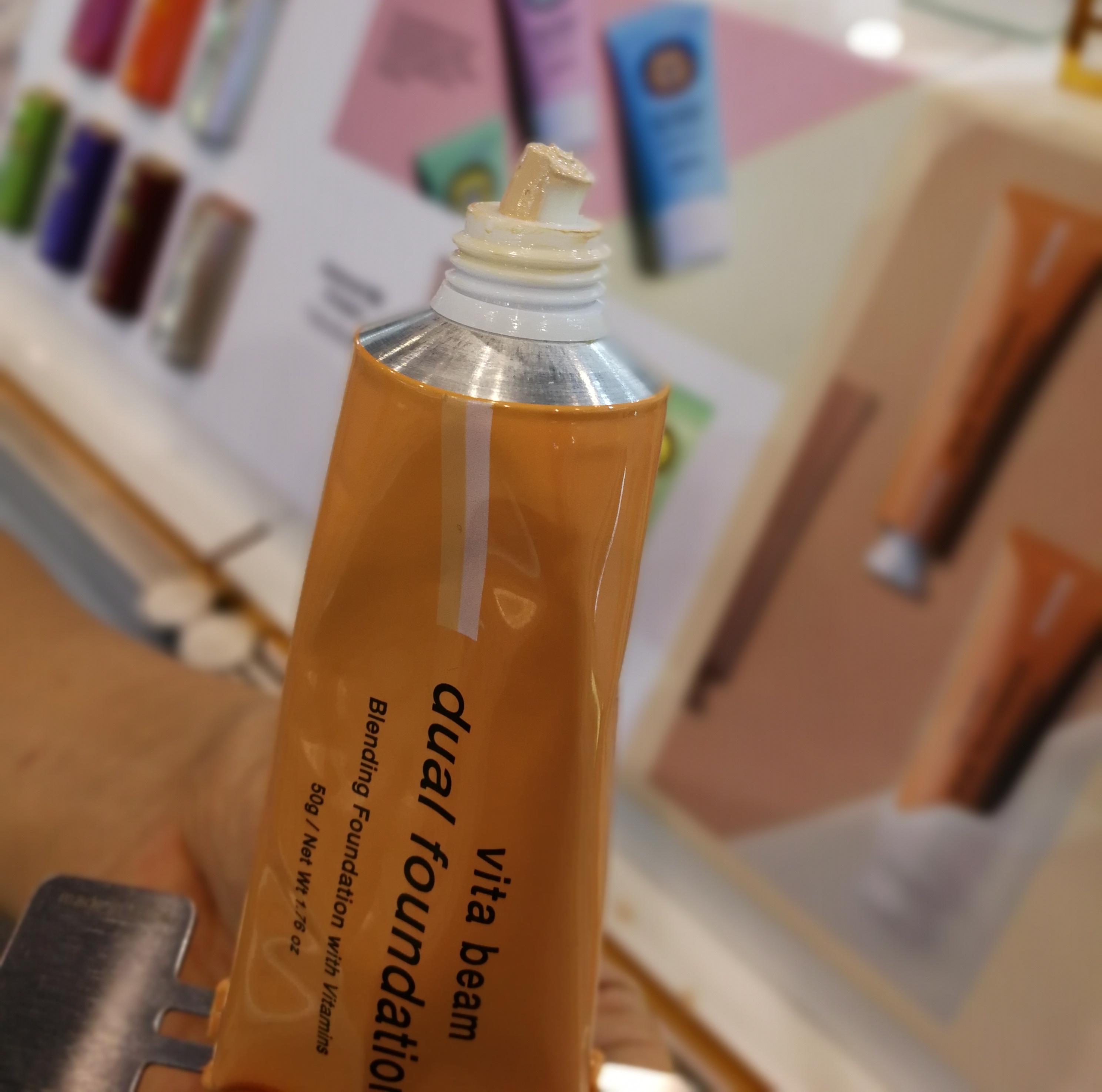Skin79 also presented some other new launches, including the Vita Beam Dual Foundation which you can see in the pictures above: when you squeeze the aluminium tube the strand of cream that comes out is bi-coloured; half white (a brightening primer) and half beige (the foundation).