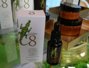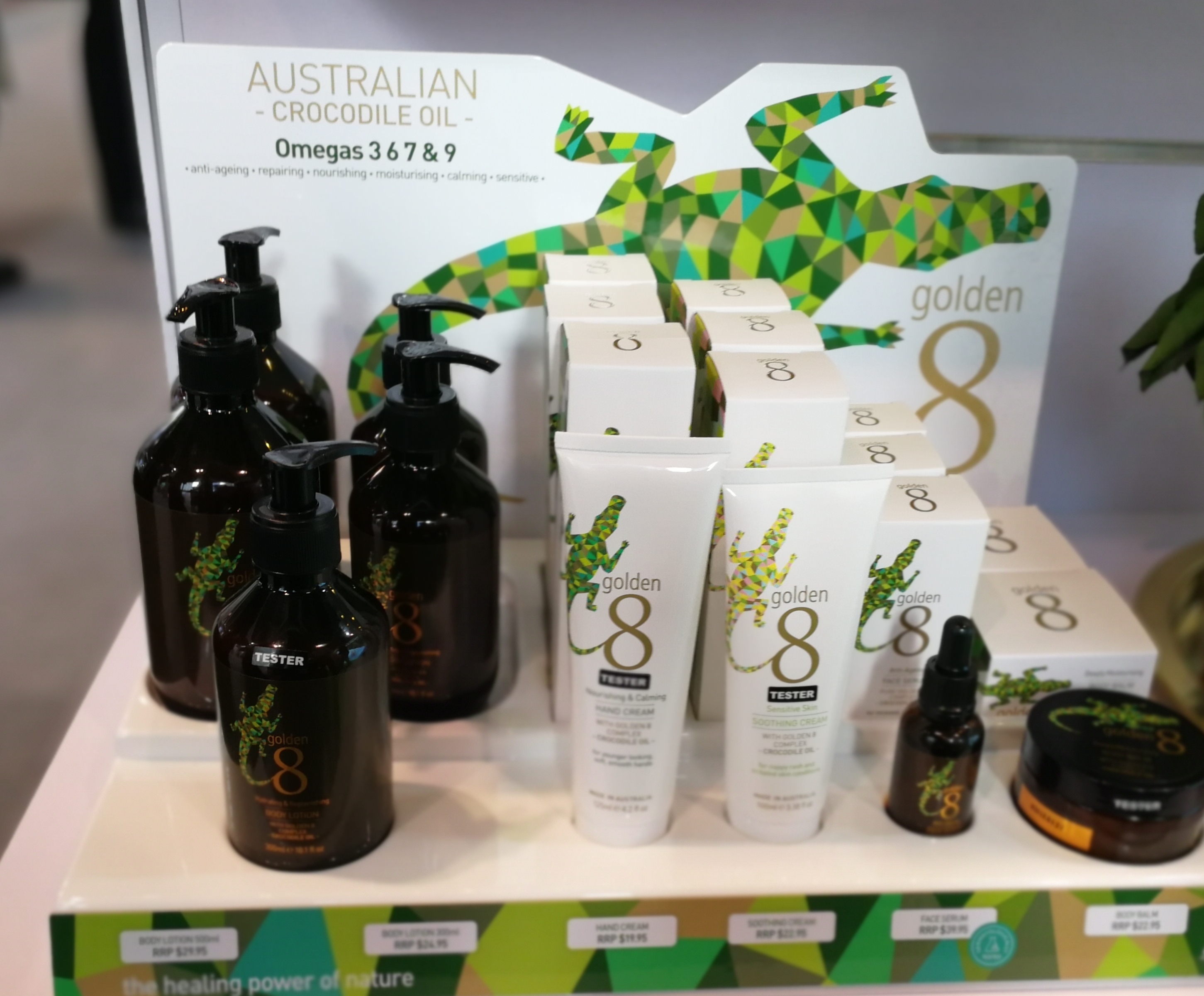 Australian skin care brand Golden 8 focuses on a rather unusual ingredient – crocodile oil. Yes, really. And Australia has a lot of crocodiles apparently; there are crocodile farms where crocs are raised for use in the fashion industry (handbags, shoes etc.). The crocodile oil is produced from the fat underneath the crocodile’s tail so it’s basically a by-product from the crocodile industry. Qnite environmentally conscious; a sort of snout to tail approach!